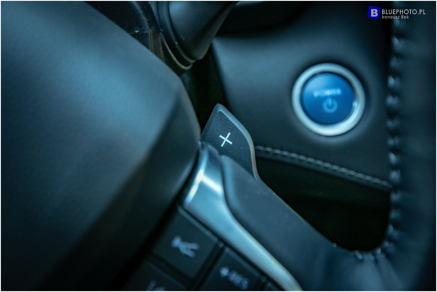 Pomimo, że auto wyposażone jest w skrzynię biegów CVT, do jej obsługi służy tradycyjny wybierak a dodatkowo pod kierownicą dodano łopatki do zmiany przełożeń. Tradycyjnie dla Toyoty na tunelu środkowym znajdziecie przełącznik trybów jazdy. Nowością jest fakt, że nie są to już osobne przyciski, a jedna „łopatka”.