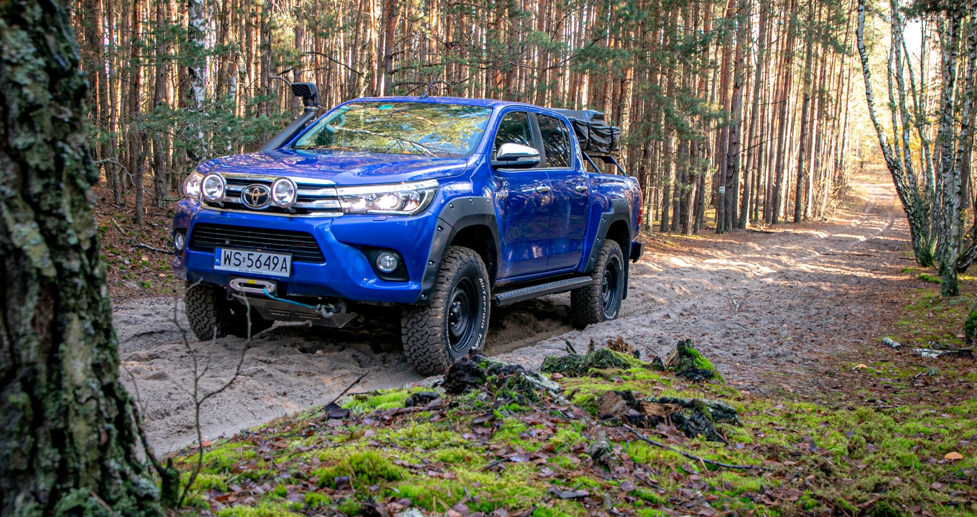 Ten Hilux jest w najwyższej wersji wyposażeniowej. Posiada więc automatyczną skrzynię biegów, podgrzewane fotele, automatyczną klimatyzację, bezkluczykowy system otwierania drzwi, multimedialną kierownicę czy elektronicze wspomagacze takie jak: system aktywnej kontroli trakcji (Active Traction Control, A-TRC), ułatwiający jazdę po śliskim i kamienistym podłożu, funkcję wspomagania podczas zjazdu ze wzniesienia (Downhill Assist Control, DAC), funkcję wspomagania ruszania pod górę (Hill-start Assist Control, HAC), system elektronicznego rozdziału sił hamowania (Electronic Brakeforce Distribution, EBD). Standardowy Hilux całkiem nieźle radzi sobie w terenie. Jednak zawsze coś można poprawić.