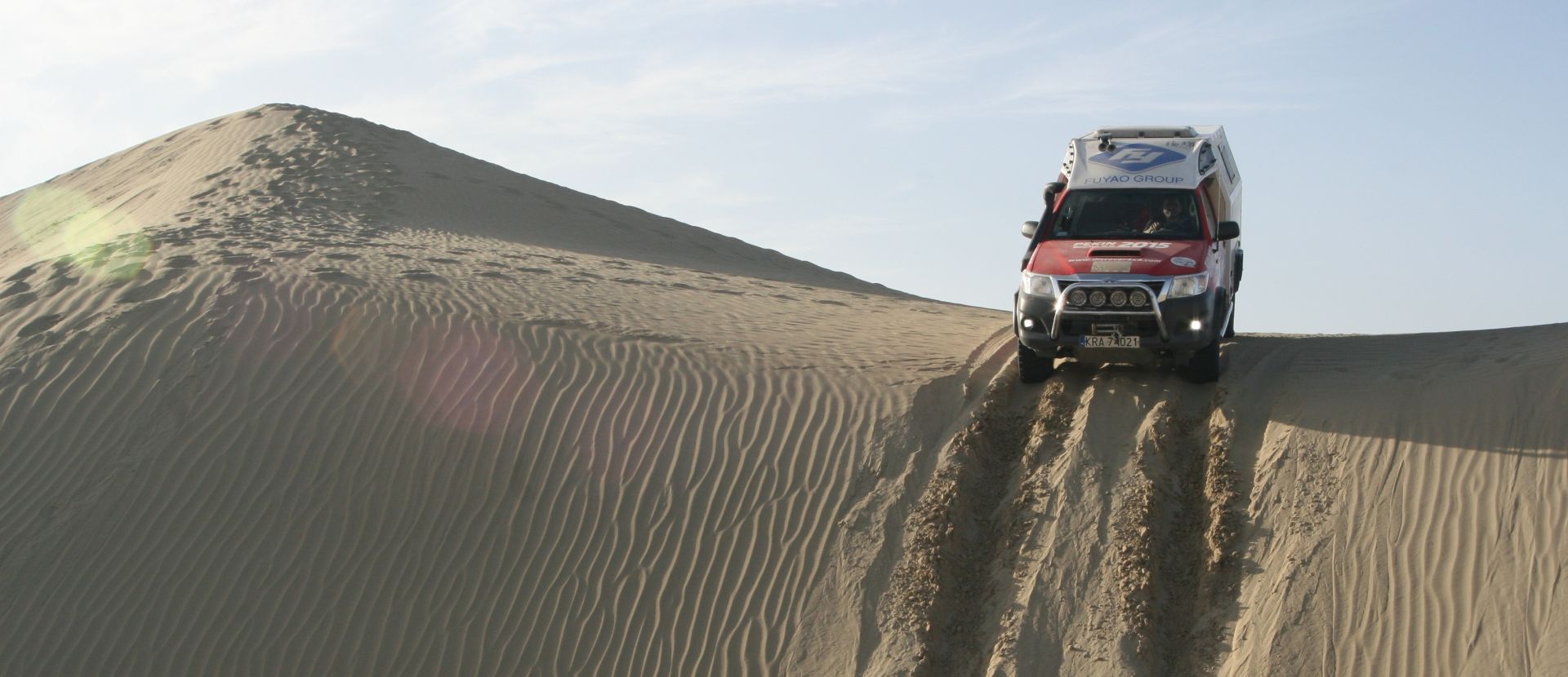 Chrzest wyprawowy nasz Hilux miał niebanalny. W dziewiczą podróż pojechaliśmy w 2013 roku do Lhasy w Tybecie. 20 000 kilometrów. Około 8 000 na wysokości przekraczającej 4 000 metrów n.p.m. Około 3 000 kamienistym terenem. Codziennie przewyższenia ponad 1 000 metrów, ale zdarzały się wspinaczki lub zjazdy… trzykilometrowe w pionie! Mieliśmy na trasie z kim rywalizować, w konwoju były i klasyczne Patrole i tuningi z silnikami Humera 6,8 litra. Nieskromnie twierdzimy, że w konkurencji tej zajęliśmy miejsce najwyższe. To przede wszystkim zasługa wyposażenia fabrycznego, a nie naszych „udoskonaleń”. Całą wyprawę przejechaliśmy praktycznie bezawaryjnie. Warunki, z jakimi przyszło nam się mierzyć, były trudne i bardzo trudne. Górskie podjazdy, szutry i kamieniska, brody w górskich strumieniach nasz Hilux pokonywał dzielnie. Na wielu niełatwych odcinkach wystarczał tylko tylny napęd. Prawdziwe trudności zaczęły się w chińskim Ladakhu, między Karakorum i Himalajami. Xinjiang-Tibet Highway to jedna z najtrudniejszych, a na pewno najdłuższa (ponad 2 000 kilometrów) z ekstremalnie trudnych dróg świata. Przejezdna tylko przez cztery letnie miesiące, niszczona często przez trzęsienia ziemi. Ilość tlenu w powietrzu na wysokościach jest tam zbyt mała nie tylko dla ludzi. Z rury wydechowej kopciło jak z piekielnego komina. Hilux dał radę. Przy pilnowaniu odpowiednio wysokich obrotów utrzymywał moc. Do jedynki redukować trzeba było tylko w trakcie pokonywania najbardziej stromych, terenowych podjazdów na niepewnym gruncie. Do Lhasy dojechaliśmy bez specjalnych przygód.
