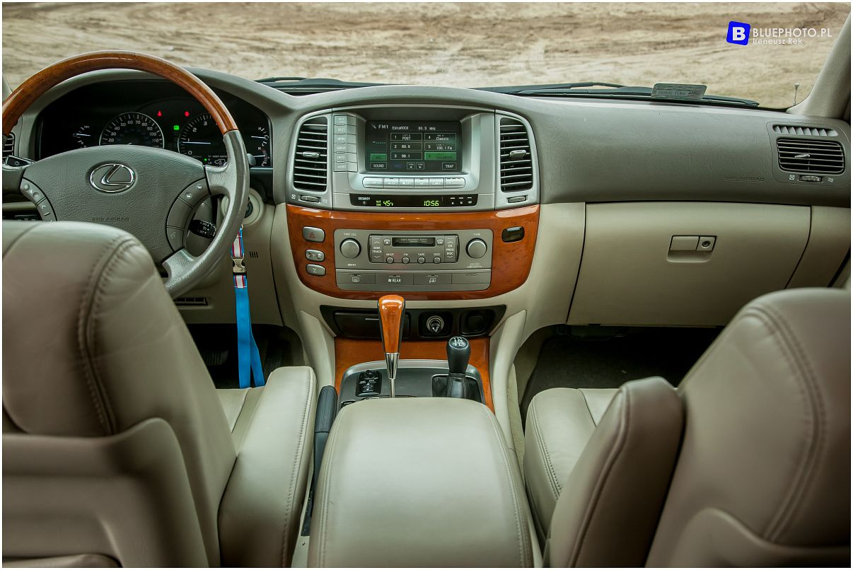 Jakie zmiany zaproponował producent w stosunku do bazowego Land Cruisera 100? Przede wszystkim zmieniono wygląd przedniego pasa. Inna atrapa chłodnicy, charakterystyczne podwójne lampy, progi z podświetleniem, relingi... Lexus dodawał w modelu od razu duże felgi 18" z oponą 275/65/18, czyli tak naprawdę całkiem spore 32-calowe koła. Auto wyposażane było również standardowo w hak holowniczy, mocowany w systemie amerykańskim "na kwadrat". Wystarczy kilka ruchów, aby zapiąć go w razie potrzeby i schować, jeśli przeszkadza na co dzień czy w terenie...