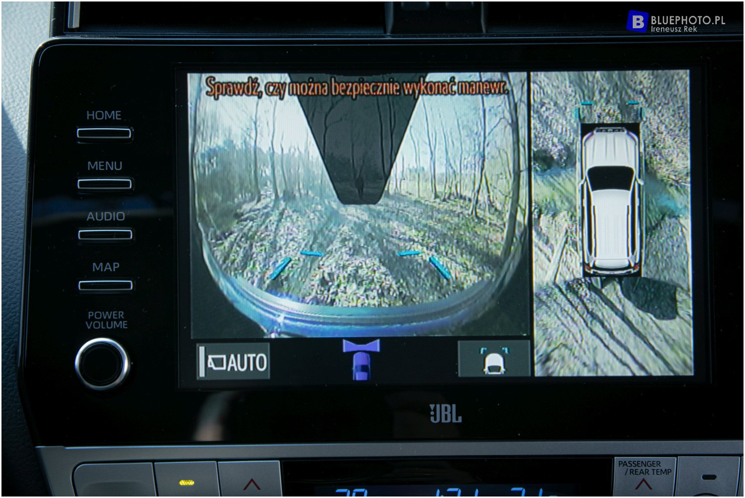 Ułatwieniem w poruszaniu się po bezdrożach jest też podgląd z kamer. Na dużym wyświetlaczu można obejrzeć sobie auto i przeszkody z góry lub uzyskać widok przed maską i na koła.