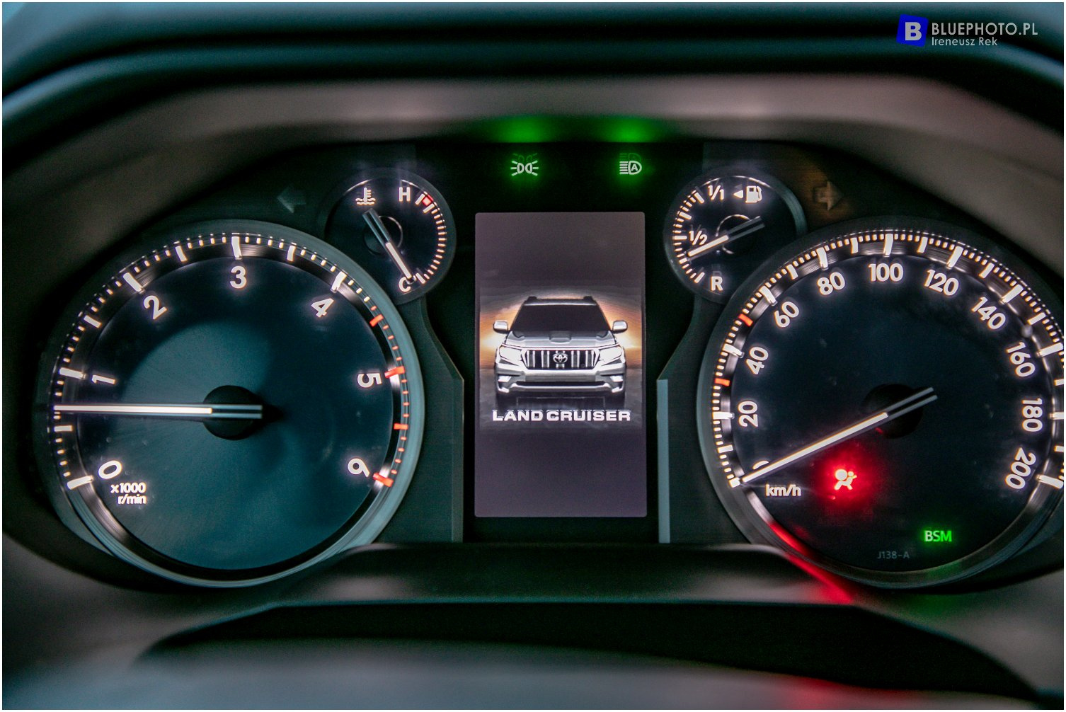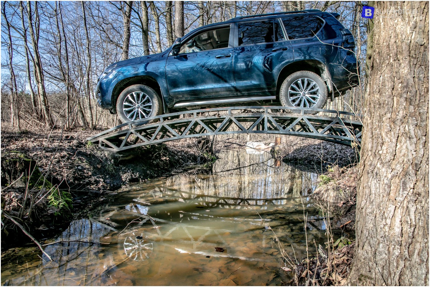 Opisując wnętrze nowego Land Cruisera można jeszcze szeroko rozwodzić się na temat multimedialnej stacji z ekranem dla pasażerów drugiego i trzeciego rzędu, elektrycznej regulacji foteli i kierownicy z pamięcią dla dwóch użytkowników, elektrycznych, składanych fotelach trzeciego rzędu, klimatyzacji trzystrefowej, podgrzewanych fotelach pierwszego i drugiego rzędu, wentylowanych fotelach z przodu, lodówce w podłokietniku, ciekawemu wzorowi skórzanej tapicerki, efektownego podświetlenia wnętrza, itd., itd... To wszystko przyda się na co dzień lub w długich trasach podczas służbowych wyjazdów czy na rodzinne wakacje. Jednak nazwa Land Cruiser zobowiązuje. Jak to auto sprawdza się w terenie?