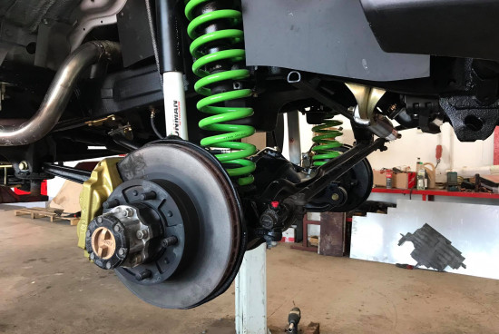 Dopasowanie podwozia do karoserii to jedno. Druga, bardzo ważna kwestia to renowacja wiekowego podwozia. Jak zobaczycie na zdjęciach, dokonano tego z naprawdę wielka starannością. Mosty i rama zostały wypiaskowane i zabezpieczone i obecnie wyglądają jak nowe. Auto zyskało również np. nowe przewody hamulcowe czy zregenerowane i pomalowane zaciski. Ale to nie wszystko. Odnowieniu poddano również chociażby pedały (oddane do galwanizacji), obudowę filtra powietrza (pomalowany) i bardzo wiele innych elementów. Na koniec auto zyskało zawieszenie Ironmana oraz opony BF Goodrich AT w rozmiarze 285/75/16.