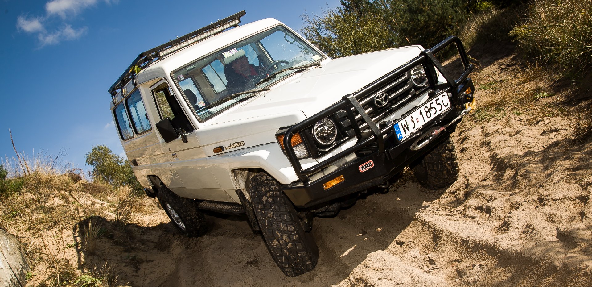 Pod maską znajduje się solidny diesel o pojemności 4,2 l. Nominalna moc to 131 KM, teraz już nieco mniej, przy przebiegu ponad 250 000 km. Nie jest to demon prędkości, do jazdy przelotowej na poziomie 90 km/h trzeba się po prostu przyzwyczaić. Owszem, można go rozpędzić do 140-150 km/h, ale przyjemność z jazdy jest wtedy wątpliwa, nie mówiąc o ekonomii. Przy normalnej jeździe jednostka zadowoli się 12-13 litrami ropy, przy szybszej - nawet do 17 litrów na 100 km. Z opcji dodatkowych zamontowałem zderzak przedni ARB z wyciągarką. Trochę dla wyglądu, trochę ze względów bezpieczeństwa przy solowej jeździe w terenie. Land Cruiser fabrycznie jest wyposażony w przednią i tylną blokadę mechanizmu różnicowego, w większości przeszkód wystarczy ich włączenie. Ale ze względu na gabaryty zdarzyło mi się kilka razy utknąć i wtedy wyciągarka była niezbędna. Do tego opony typu Mud Terrain.