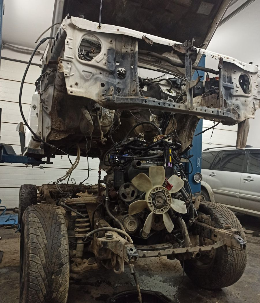Nadwozie zostało całkowicie rozebrane i poddane sodowaniu po czym okazało się że tylna zewnętrzna część progów wymaga naprawy blacharskiej. Po tych pracach nadwozie Toyoty dostało solidny podkład, profesjonalne zabezpieczenie nadkoli oraz podłogi karoserii. Następnym krokiem było nałożenie nowego oryginalnego białego koloru. Zderzaki oraz listwy boczne zostały polakierowane powłoką Raptor. Po powrocie z lakierni rozpoczęto montaż karoserii na wcześniej złożoną ramę.
