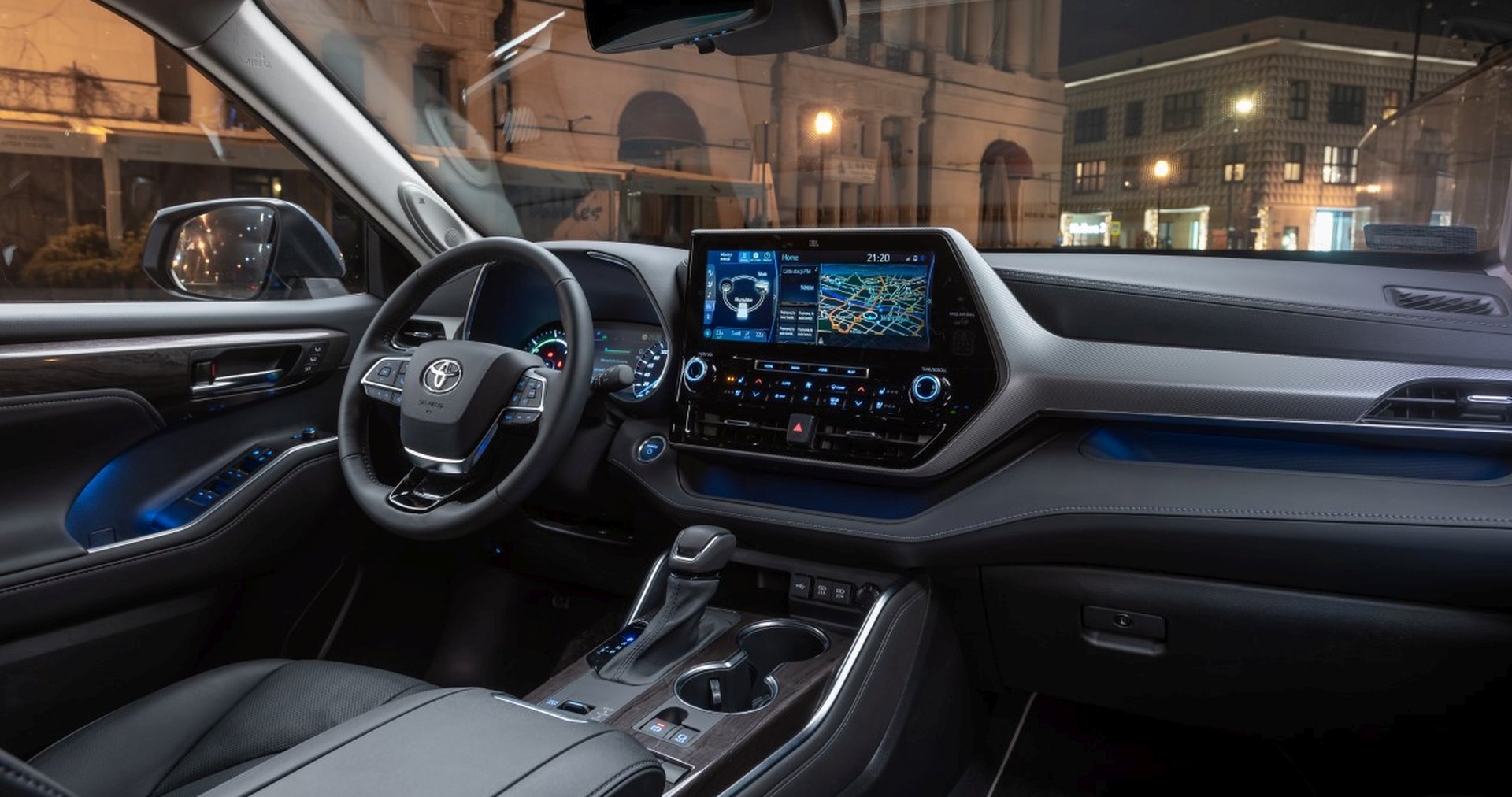Bogate wyposażenie Highlandera obejmuje 7-calowy ekran TFT między zegarami, 12,3-calowy ekran dotykowy na konsoli centralnej, obsługujący multimedia i nawigację oraz telefon za pośrednictwem Apple CarPlay™ lub Android Auto™, system audio Premium JBL o mocy 1 200 W z 11 głośnikami oraz wyświetlacz Head-up Display na przedniej szybie. Auto otrzymało także bezprzewodową ładowarkę telefonu, 3-strefową klimatyzację, podgrzewanie siedzeń z przodu i z tyłu, wentylowane przednie fotele oraz wirtualne lusterko wsteczne z kolorowym wyświetlaczem cyfrowym, pokazujące obraz z regulowanej kamery wysokiej rozdzielczości, zamontowanej nad tylną szybą auta. Kierowca zyskuje dzięki temu wyraźny obraz sytuacji za pojazdem, gdy np. przewozi w bagażniku przedmioty zasłaniające tylne okna.