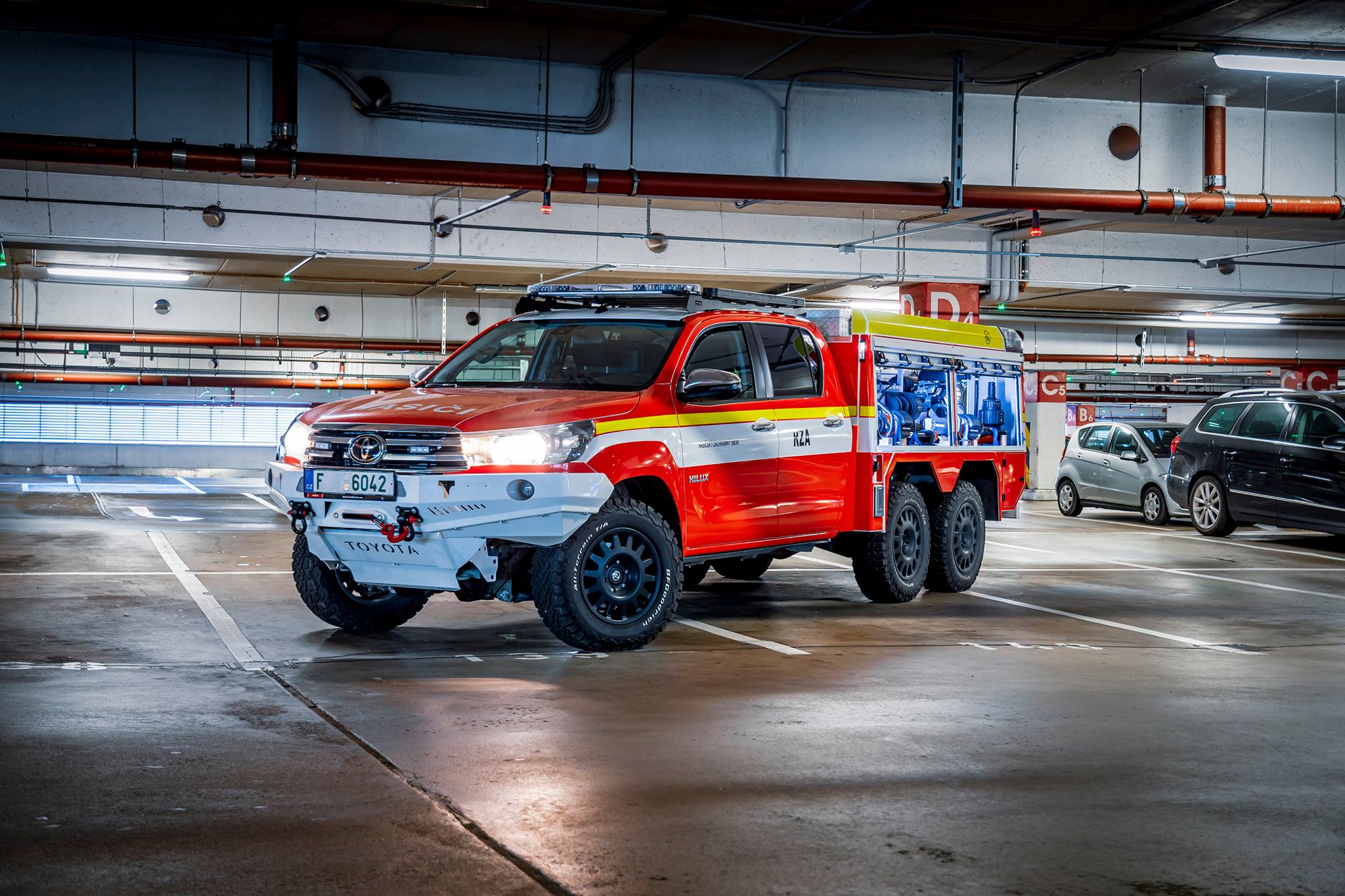 Ten strażacki Hilux to produkt brytyjskiej firmy Prospeed, która zastosowała swoje rozwiązanie Hiload 6x6. Nie jest to pierwsza taka konwersja z dodatkową osią. Wcześniej podobne pojazdy były przygotowywane chociażby przez Arctic Trucks. Dodatkowa oś to nie tylko napęd 6x6, ale przede wszystkim zwiększona ładowność oraz długość. W tym przypadku to aż 3000 kg oraz dodatkowe 123 cm. Hilux jest zaprojektowany tak, by mieścił się w niskich garażach, jego wysokość to 185 cm.