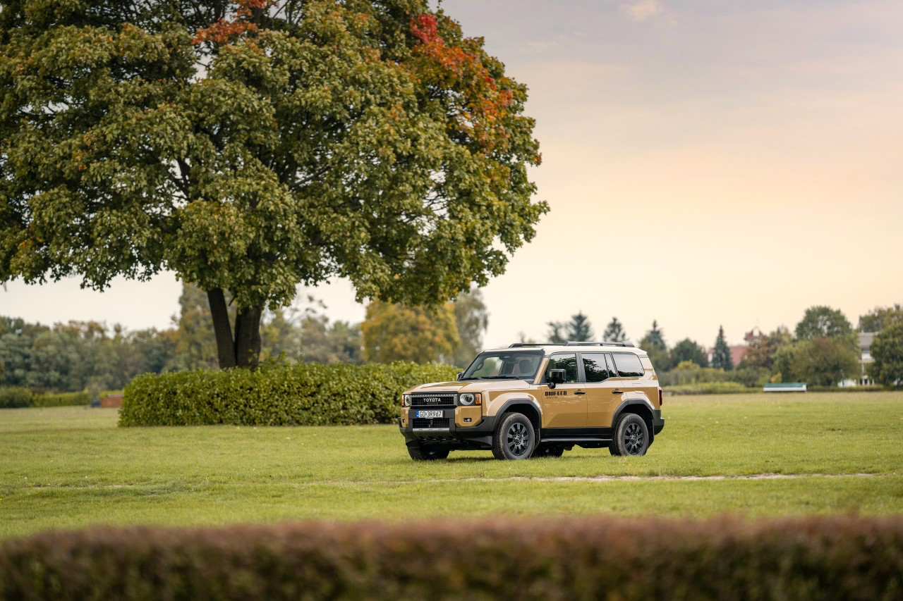 Nowa Toyota Land Cruiser łączy najnowocześniejsze technologie z klasyczną konstrukcją opartą na ramie i stałym napędem na cztery koła. W najnowszej odsłonie kultowy model zyskał innowacyjne technologie ułatwiające jazdę off-roadową, a także pełen pakiet najnowocześniejszych multimediów oraz systemów bezpieczeństwa Toyota T-MATE. Samochód ma silnik Diesla o pojemności 2,8 l o mocy 204 KM połączony z 8-biegową skrzynią automatyczną.