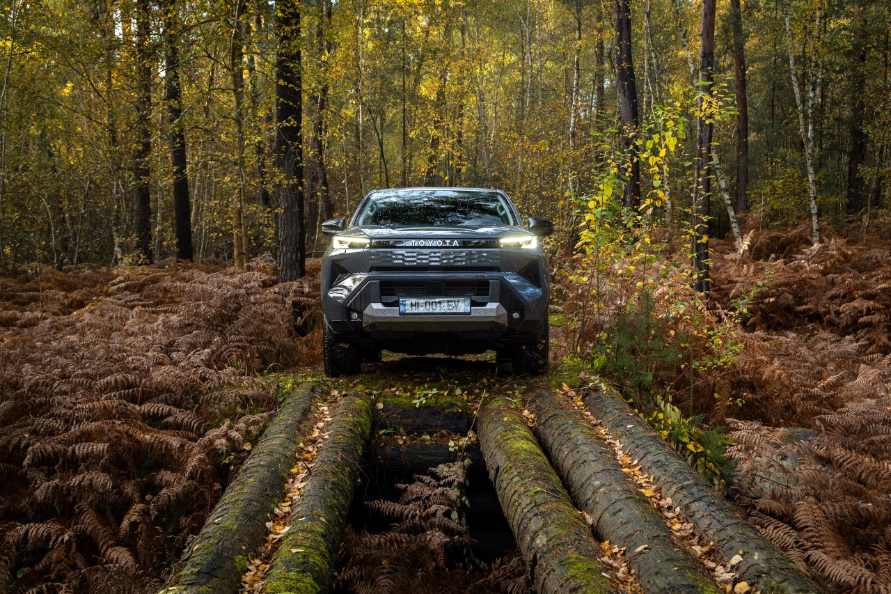 Elektryczna Toyota Hilux została zaprojektowana z myślą o trudnych warunkach terenowych i zachowała klasyczną, solidną konstrukcję ramową. Specjalne rozwiązania chronią akumulator przed uszkodzeniem lub zalaniem, a głębokość brodzenia jest identyczna jak w obecnej generacji z silnikiem spalinowym.
