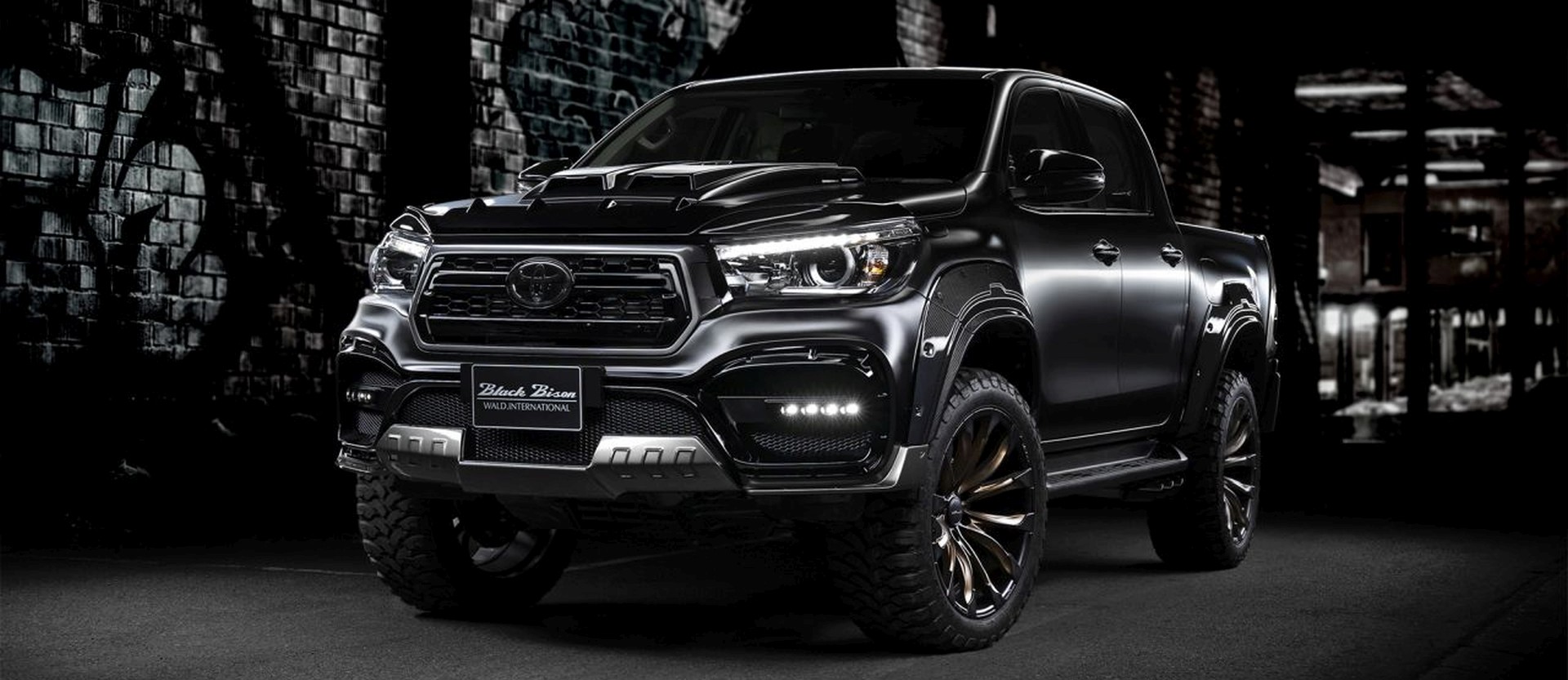 Japońska firma WALD International po raz kolejny opracowała pakiet tuningowy do samochodu Toyoty. Tym razem fachowcy od tuningu wzięli na warsztat pick-upa marki i stworzyli model Hilux Sports Line Black Bison Edition. Rasowa terenowa Toyota pokryta matowym czarnym lakierem, ubrana w body kit od WALD i 22-calowe koła wygląda naprawdę groźnie.