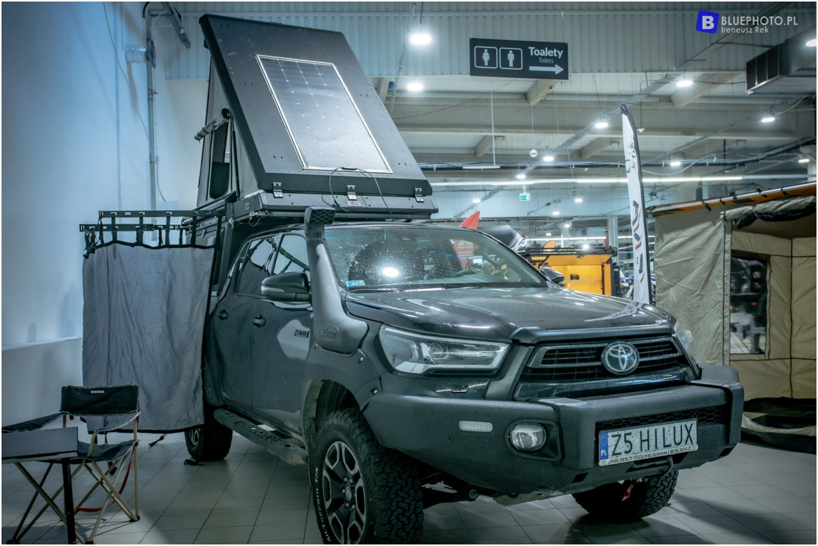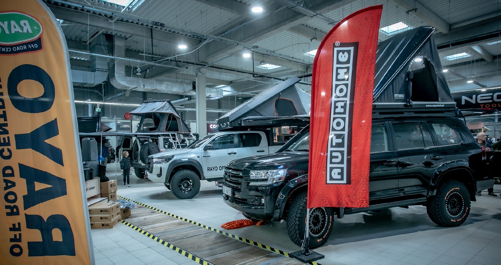 Najbardziej efektowną zabudową na pickupa była zaproponowana przez firmę RAYO, czyli zabudowa ALUCAB. Posiada podnoszony dach i bardzo efektownie wykorzystaną przestrzeń, ze spaniem w środku i wielką ilością kieszonek, schowków, przydatnych dodatków. Dla tych, którzy nie lubią łopotu namiotu nad głową ciekawym rozwiązaniem jest propozycja firmy AZAR4. Ich zabudowa to sztywna kapsuła, która może być wyposażona nawet w łazienkę. Na targach swoje rozwiązanie zaprezentowała również firma HYENAOVERLAND. Ich rozwiązanie jest prostsze, ale też korzystniejsze cenowo w stosunku do oferty konkurencji.