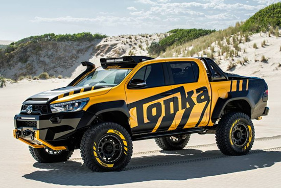 Toyota Australia stworzyła koncepcyjną wersję bardzo popularnego w Australii Hiluxa, inspirowaną zabawkową ciężarówką produkowaną przez firmę Tonka. Żółto-czarny monster truck jest jedynym w swoim rodzaju prototypem, w pełni zdolnym do terenowej jazdy. Tym projektem Toyota Australia celebruje 80. rocznicę Toyoty i 70-lecie firmy Tonka.