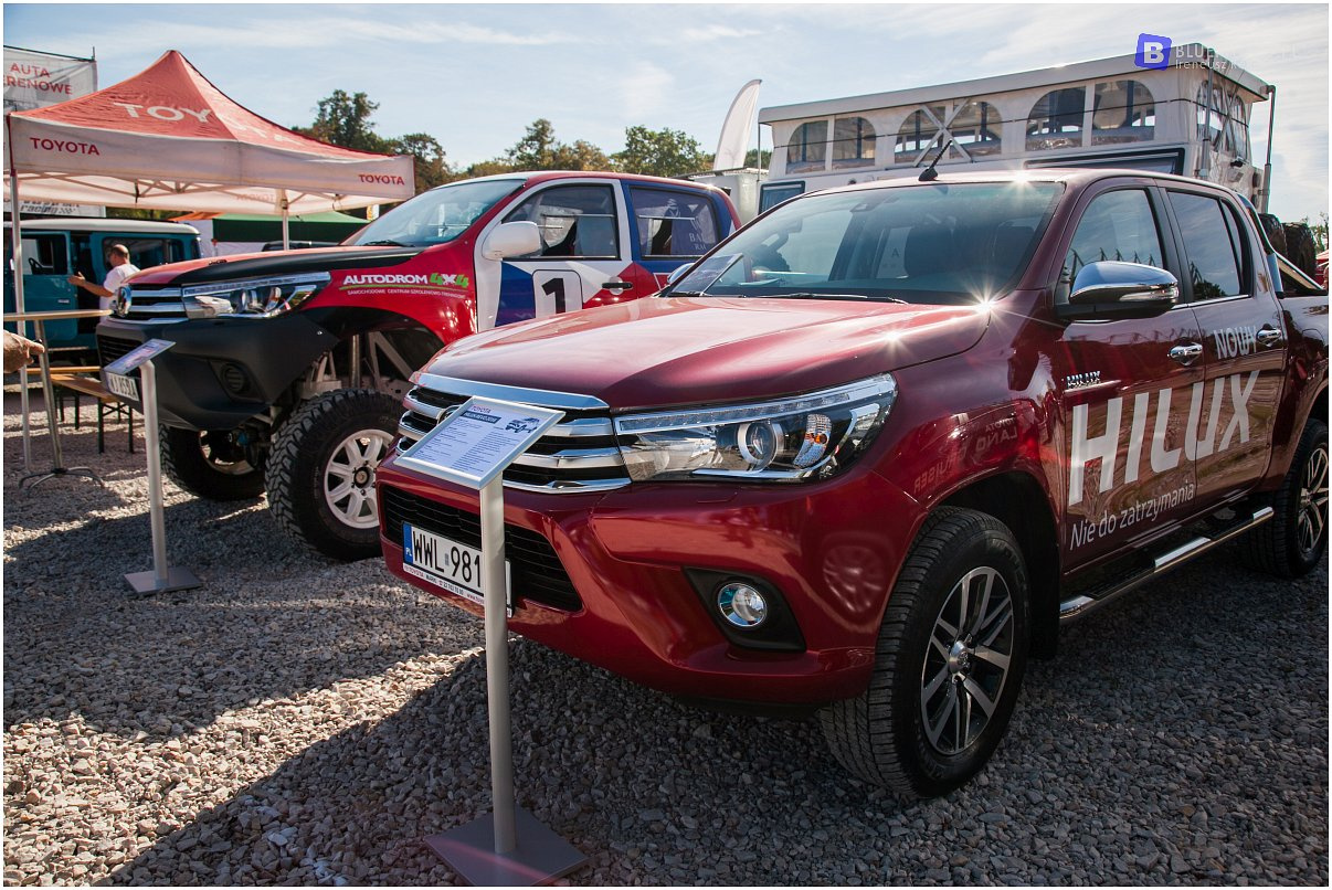 Obok możemy zobaczyć nowego, seryjnego Hiluxa z ulepszoną ramą i nadwoziem o większej wytrzymałości, o nowym, bardzo atrakcyjnym wyglądzie. Nowy, wysokoprężny silnik D-4D 2,4 l o mocy 150 KM i momencie obrotowym 400 Nm zapewnia znakomite osiągi, łatwość pokonywania terenu i uciąg zwiększony do 3,2 t, zaś system Toyota Safety Sense – podwyższony poziom aktywnego bezpieczeństwa jazdy po drogach.