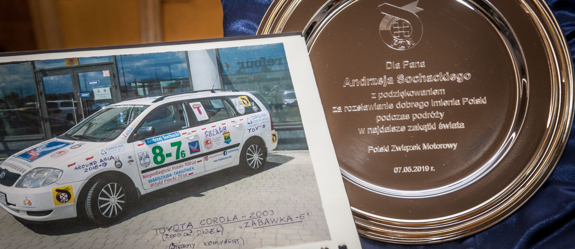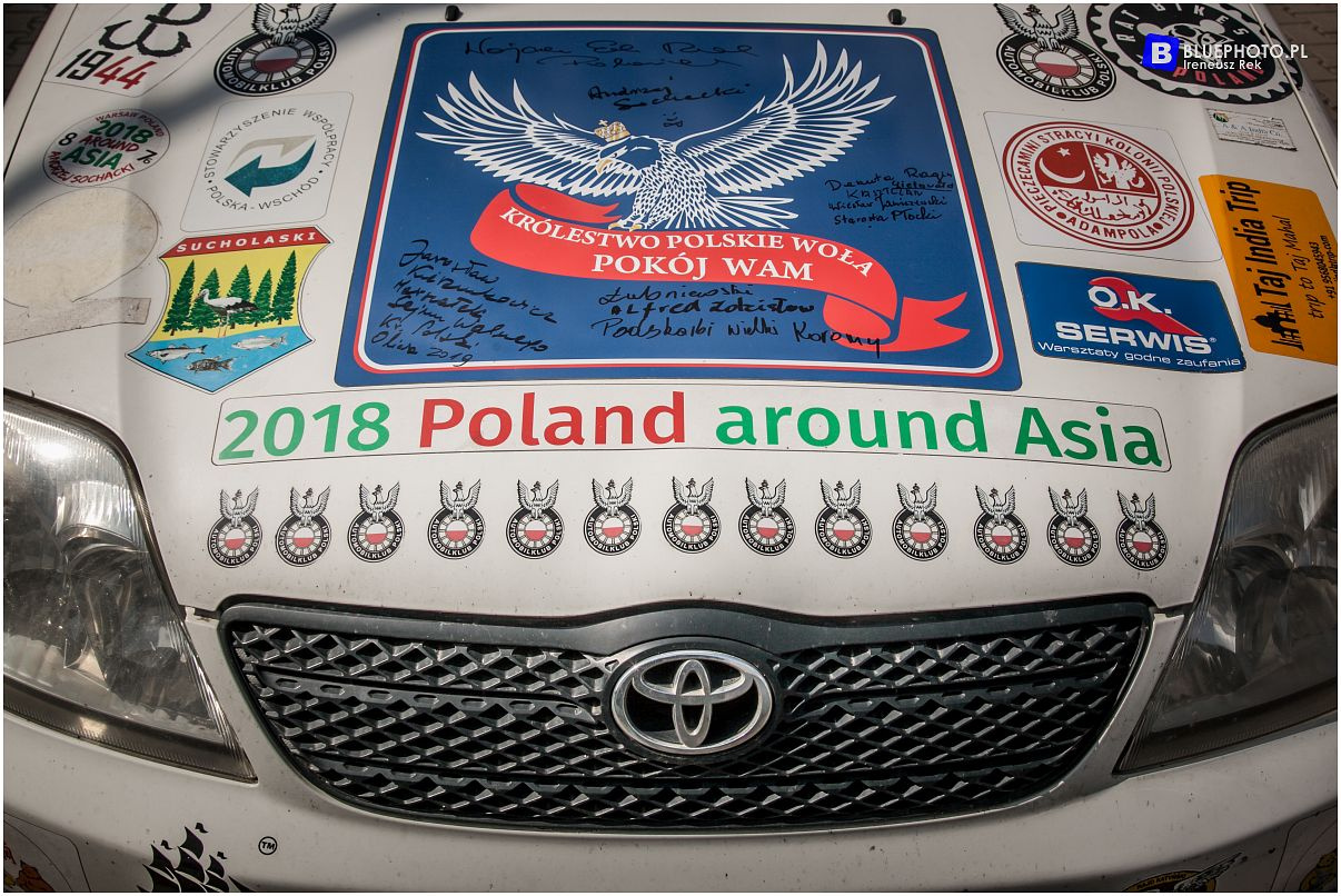 Jakim autem można przebyć tyle tysięcy kilometrów? Kiedyś tej sztuki udało mu sie dokonać WV Garbusem. Teraz kolejny raz usiadł za kierownicą sprawdzonej już w Afryce Toyoty Corolli. Tym razem był to egzemplarz z silnikiem diesla i kolejna bezawaryjna wyprawa została ukończona w japońskim aucie. Jedyny kłopot to tankowanie w Iranie gdzie trudno o paliwo do diesla. Nie najmłodsze już białe auto oklejone zostało cyframi określającymi która to już podróż dookoła świata i kontynent oraz wspierających go w drodze instytucji. Początek i oficjalne zakończenie wyprawy zaplanowane zostało z polskiej wioski Polonezkoy na zachodzie Turcji. Ta założona prawie 200 lat temu osada jeszcze 40 lat temu, podczas pierwszej wizyty Andrzeja, tętniła polskością. Obecnie ze 170 polskich rodzin zostało tam kilkadziesiąt i już nie jest rolniczą wioską ale wczasowym kurortem. Za jakiś czas tutaj właśnie trafi ta wyjatkowa Corolla, którą Andrzej Sochacki przemierzył Azję.