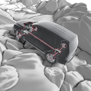 Aktywny system kontroli trakcji rozpoznaje, które koło traci przyczepność i automatycznie przekazuje moment obrotowy na pozostałe koła. Doskonale sprawdza się w ciężkim terenie.