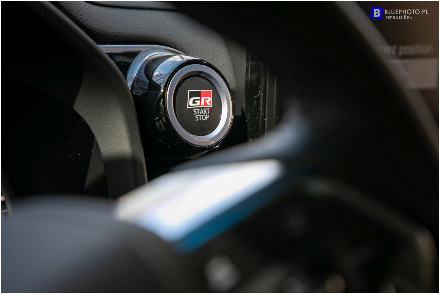 Kierownica jest duża, wygodna, z możliwością sterowania wybranymi funkcjami samochodu. Za nią, pomiędzy okrągłymi zegarami, drugi duży wyświetlacz z kolejnym zestawem widoków. W środku terenówka niczym nie różni się od osobówki. I dobrze, czasy traktorowego wnętrza minęły nawet w poczciwym Hiluxie. Jest to wersja GR Sport, dlatego na kierownicy pojawił się charakterystyczny znaczek z literkami GR. Zresztą takich GR-owych smaczków stylizacyjnych jest więcej.
