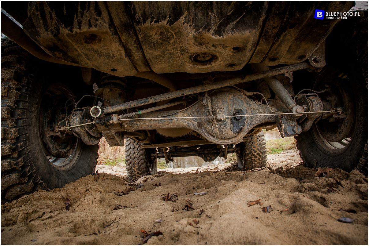 Spotykamy się na piaszczystej, świdrzańskiej plaży. Land Cruiser LJ 70, który pokazuje mi Paweł jest tuż po remoncie, blacha połyskuje świeżo położoną powierzchnią powłoki Raptor, stalowe zderzaki czekają na starcie z terenowymi przeszkodami. Jak to sie stało, że wybrał akurat Land Cruisera? Dlaczego zainteresował się offroadem? Początek terenowych zabaw to jak to zwykle bywa przypadek. W rodzinie potrzebne było większe auto, akurat wówczas pod dom trafił trzydrzwiowy Hyundai Galloper. Pierwszy wyjazd na terenową imprezę udowodnił, że to jest to co pasjonuje i ojca, i syna. Auto zostało dozbrojone, przez kilka lat załoga zdobywała umiejętności i doświadczenie.