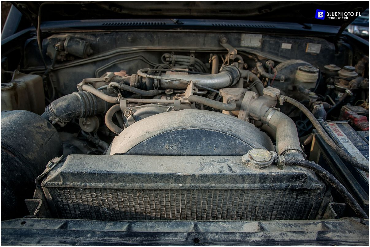 Potem jeszcze dozbrojenie w stalowe zderzaki oraz połozenie warstwy ochronnej na blachy w postacji preparatu RAPTOR w warsztacie IRONHOG 4x4 w Nasielsku i auto nabrało terenowego charakteru. Czy w tej chwili spełnia już wszystkie zamierzenia i plany? Oczywiście nie. Zawsze znajdzie się coś do poprawy, przerobienia. Wnetrze, w tej chwili spartańskie, bez dywaników wymaga wyciszenia, lift zawieszenia wykonany spawarka i podkładkami bedzie zastąpiony markowymi częściami, auto zyska wyciagarkę, lepszą tapicerkę na fotelach. W marzeniach jest też mocniejszy silnik (pod maską jest obecnie diesel 2,4l z turbiną o skromnej mocy 86 KM).