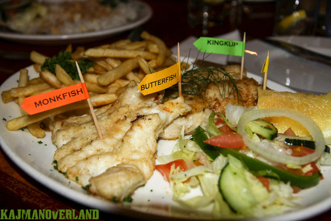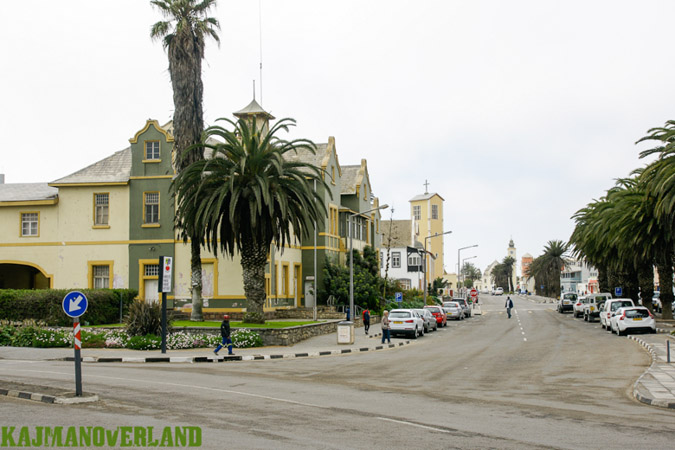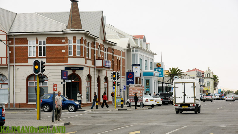 Swakopmund – niemal nie do odróżnienia od przeciętnego niemieckiego miasteczka z początków XXw., architektura, szyldy w gotyku, czystość na ulicach. Przy plaży stylowa latarnia morska. Jedyna różnica, to targ lokalnego rzemiosła – jeszcze nigdy nie spotkaliśmy tylu „autentycznych“ twórców identycznych naszyjników i bransoletek na tak małej powierzchni. Negocjacje handlowe zakończyły się sukcesem – każda transakcja kończyła się na poziomie 35-40% ceny wyjściowej.