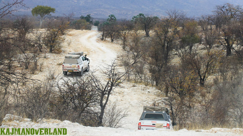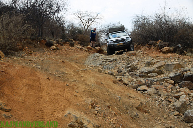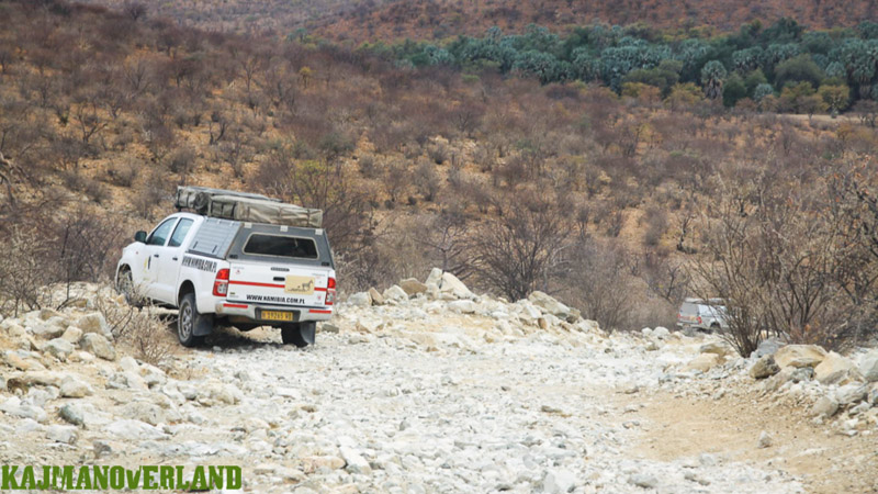 Od tej pory drogą nikt się nie zajmował, więc lata świetności ma zdecydowanie za sobą, choć jest powszechnie uważana za jedną z piękniejszych tras off-roadowych Namibii. Po drodze rewelacyjne widoki na rzekę Kunene wijącą się wzdłuż namibijsko-angolańskiej granicy (chociaż może to raczej granica wije się wzdłuż rzeki...). A poza tym olbrzymia ilość wspinaczek i zjazdów skalnymi rumowiskami pretendującymi do miana traktu. Chwilami wręcz musieliśmy z aut wysiadać, aby część drogi naprędce dobudować. Dla nowicjuszy takich jak my – wspaniała przygoda i spore emocje.