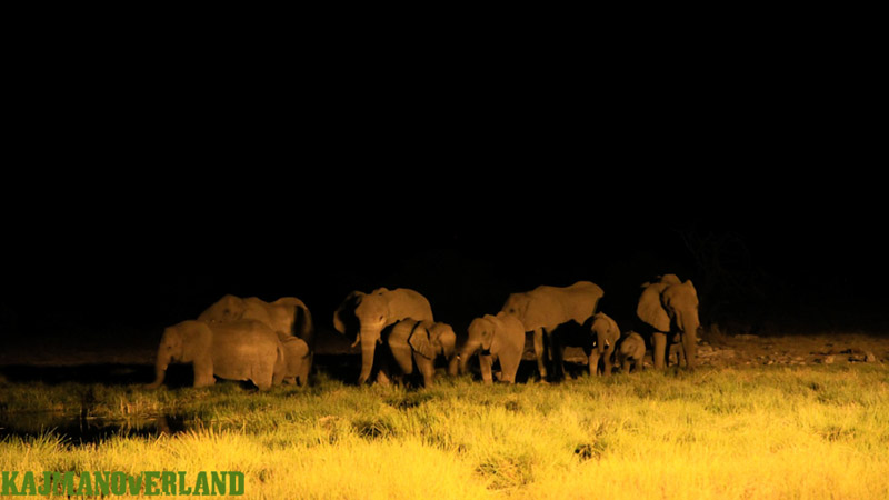 Pierwszy nocleg w Namutoni. Biwak piękny, z widokami, a wieczorem wizyta na miejscowym „waterhole“ (oczku wodnym) i piękna parada słoni. Za to dzisiaj...