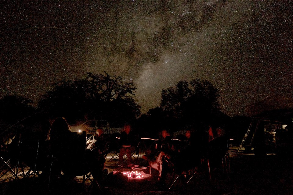 Rozpalamy ogień i rozpoczynamy kolejny wieczór opowieści o Afryce. W promieniu dziesiątek kilometrów żadnego światła, tylko nasze ognisko. W nocy ubieramy wysokie buty przeciw wężom i skorpionom i wychodzimy na środek solniska. Sesja zdjęciowa jak na księżycu. Gwiazdy świecą tak mocno, są tak blisko, że niemal można ich dotknąć. Noc jakby cieplejsza, a może to impreza przy ognisku nas tak rozgrzała.