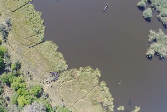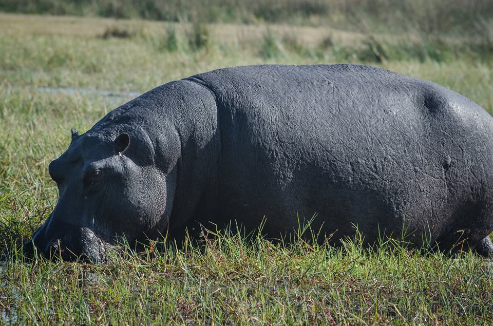 Po jakimś czasie dodatkową atrakcją jest piesze safari po jednej z okolicznych wysepek. W drodze powrotnej kilka razy napotykamy na hipopotamy, których baseny i miejsca kąpieli sprawnie omija przewodnik.