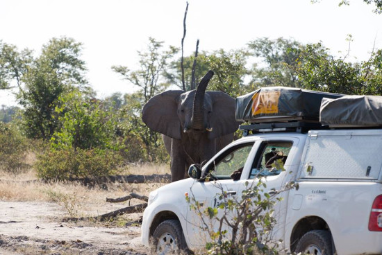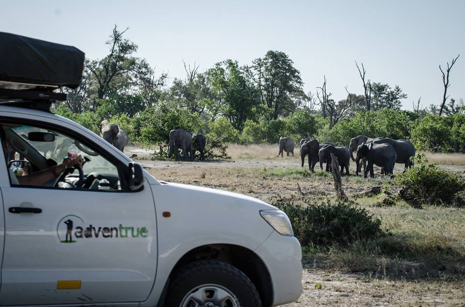 Rano z Audi Campu zabiera nas Terenowa ciężarówka Man. Po godzinie jazdy przez rozlewiska docieramy na przystań łodzi mokoro. Z pewnością żadna Terenówka nie dałaby rady Manowi z kołami większymi od całych naszych 4x4. Zajmujemy miejsca po dwie osoby w każdej dłubance, całe szczęście, że łódką kieruje doświadczony przewodnik. Z całą pewnością sami zgubilibyśmy drogę po kilkuset metrach od przystani. Ben sprawnie odpycha się długą tyczką pomiędzy zaroślami. Wydaje się to bardzo łatwym zajęciem, nic bardziej mylnego - to odpowiedzialna i trudna sztuka, której młodzi kandydaci na przewodników uczą się latami. Nagle Ben ucisza nas i każe lekko powstać. Przed nami w zaroślach poranną kąpiel bierze stado słoni. Używając trąb niczym pryszniców oddają się porannym rytuałom. Patrzę to na słonie to na uczestników z otwartymi z wrażenia ustami.