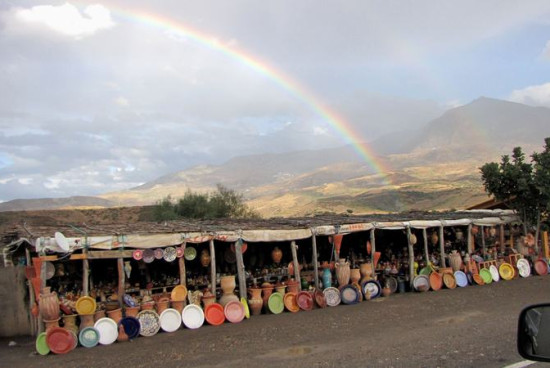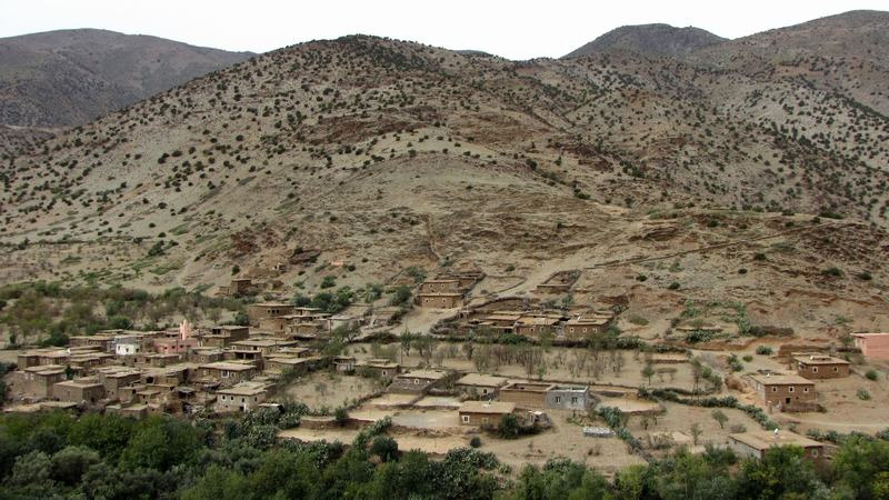 Uzupełniamy zapasy i kierujemy się na południe, drogą R203 w kierunku Asni i pasma gór Wysokiego Atlasu. Tuż za Asni, rozstajemy się z Przemkiem, bierze swój plecak i rusza w góry pod „Diebel Toubkal” (4167m. n.p.m.). My jedziemy dalej i po następnych 70km, na przełęczy Tizi-n-Test, na wys. 2092 m n.p.m., przecinamy to pasmo górskie. Krajobrazy to brąz zmiksowany z zielenią, góry do oglądania podały się nam z posypką, a droga miejscami wiła się agrafkami. Zjeżdżamy do Taroudant i pozostawiając z boku Agadir (nie zwiedzamy ponownie mniej ciekawych miejsc), jedziemy do miejscowości Tiznit, gdzie tuż za miastem lokujemy się na campingu (60 MAD od auta).