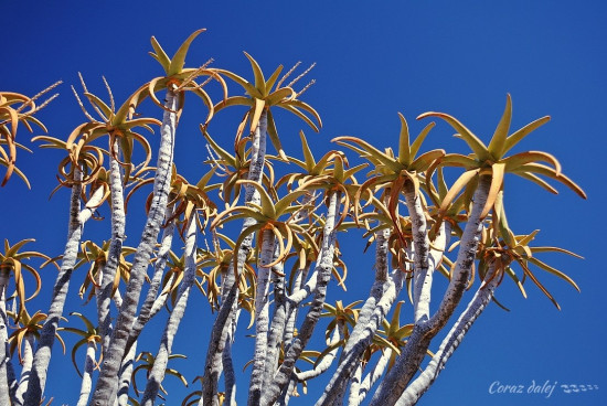 Niedaleko naszego obozu rośnie ogromne Cobas Tree – po naszemu drzewo maślane. Podobno sok z młodej łodygi tego drzewa pomaga w leczeniu chorób skóry. Drzewo to może osiągnąć wysokość 6 metrów, a średnica jego pnia przekracza często 1 metr. Kora drzewa maślanego wygląda jakby była papierowa. Drzewo maślane rośnie tylko w Namibii i Angoli, w Namibii jest objęte ochroną.