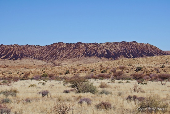 edziemy dalej malowniczą trasą wiodąca przez część parku Namib Naukluft, masywy górskie i kręte, strome drogi prowadzące przez przełęcze Gaub i Kuiseb. Gaub Pass przypomina mi trochę filipińskie Wzgórza Czekoladowe.