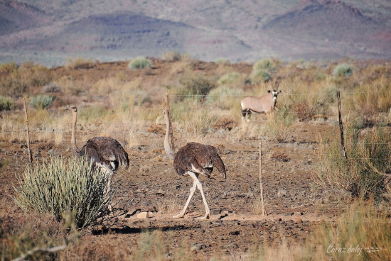 W lesie spędzamy jakieś 40 min., potem jedziemy 13 km do miasteczka Keetmanshoop na zakupy. Po zapełnieniu lodówki idziemy napełnić nasze żołądki i dalej w drogę. Tym razem nie jedziemy już asfaltem, nasz szlak prowadzi drogami szutrowymi. Namibia zaczyna też powoli ukazywać nam swoje piękno. Krajobrazy zmieniają się co chwilę, mieniąc się wszystkimi kolorami. Takiej różnorodności nie spotkaliśmy dotąd w żadnym innym kraju. Po drodze zaczynamy spotykać pierwsze strusie, zebry i oryksy.