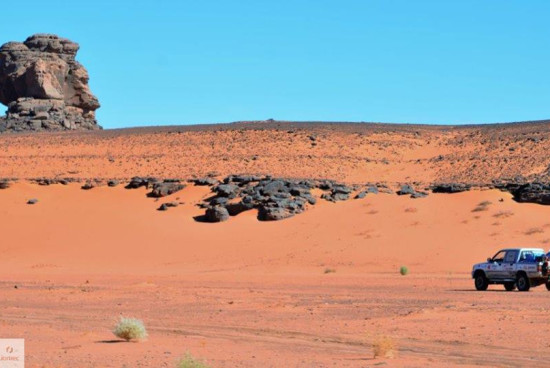 Po śniadaniu wyruszamy w dalszą trasę, Przewodnik prowadzi nas do miejsc gdzie znajdują się malowidła skalne. Potem dojeżdżamy do dużej wydmy, którą musimy pokonać, aby kontynuować dalsza trasę. Przewodnik tłumaczy jak należy jechać i pierwszy prawie pokonuje wydmę. Za nim decyduje się pojechać Kasia. Hi Lux radzi sobie super, ale musi uznać wyższość natury. My docieramy na sam szczyt, lecz stajemy niefortunnie w poprzek góry i nie obędzie się, więc bez trapów, aby zjechać z powrotem. Ponieważ Bartek nie decyduje się na próbę wjechania zawracamy, więc i musimy dotrzeć w to miejsce od drugiej strony wydmy okrężna trasą. Tak, więc zawracamy tą samą drogą i wyjeżdżamy z piasków do następnego miejsca postojowego położonego wśród gór, ale już bez pisaku. Prędkość dochodzi do 90 km/godz. Samochody mkną przez pustynię. Krajobraz to góry pokryte prawie czarnym rozpadającym się łupkiem. Rozbijamy obóz oraz nasz namiot do markizy dla Tuaregów, którzy rano są bardzo wdzięczni za to. Do tej pory spali pod gołym niebem. To jest ich normalny nocleg.