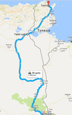 W nocy dopływamy do Palermo i chociaż byliśmy już w łóżkach nie darowaliśmy sobie, aby nie wyjść na pokład i nie zobaczyć rozświetlonego miasta. Ranek wita nas pięknym słońcem zaglądającym przez okno do naszej kajuty. Odprawa trwała ponad dwie godziny. Można było sobie przypomnieć jak wyglądały nasze granice za czasów PRL-owskich. Przegląd bagaży, mnóstwo osób kontrolujących, stanowisk, pieczątek aż w końcu udało się wyjechać z portu. Obraliśmy kierunek Souse i problem na wjeździe na autostradę. Nie mamy tutejszej waluty, a nie można zapłacić w euro lub kartą. Chwilę trwało zanim dogadaliśmy się z panem w budce, który wypisał nam kwit i na wyjeździe uregulowaliśmy dług. Na stacji spotykamy się z Tomkiem i Kasią – częścią naszej ekipy. Obieramy kierunek Telab Larbi tj. granica z Algierią. Niestety okazało się, że Toyota Hi Lux zaświeciła wszystkimi kontrolkami w czasie jazdy. Krótka rozmowa z naszym mechanikiem w Polsce i jego szybka i trafna diagnoza uspokoiła nas, że to alternator. Decyzja jedziemy bez świateł w Hi Luxie, do pozostałej ekipy, która już jest już w hotelu w mieście Gafsa. W Polsce raczej nie do pomyślenia, ale tutejszy styl jazdy, zasady są inne. Przed północą spotykamy się z Barkiem i pozostałą ekipą.