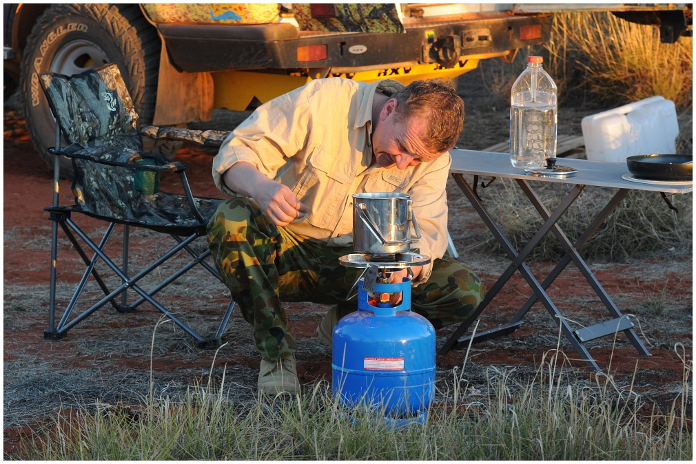 Fotografujemy po drodze wszystkie ciekawostki, znaki, pamiątki po poprzednikach czyli to co nie pasuje do pustyni i się wyróżnia. Zaliczamy jedną studnię za drugą. Jest sucho jak pieprz ale kurz i skamieniała czerwona glina pokazuje, co może tutaj się dziać gdyby chociaż trochę popadało. Pierwszy nocleg mamy miedzy studniami 6 i 7 w miejscu zwanym Windlich Springs. Jest to brzeg uroczego koryta rzeki wypełnionego wodą, pamiątka pory deszczowej, która świadczy niezbicie o tym, że na tej pustyni jest woda. Po zasłużonym odpoczynku jedziemy dalej. Spotykamy po drodze samotnego „Easy Rider’a” przemierzającego Toyotą pustynię, nigdzie się nie spiesząc, z radością żyjąc po swojemu. Kilka słów zamienione z nim uświadamiają nam, że wszyscy w promieniu kilkuset kilometrów, już o nas wiedzą dzięki komunikatom w radiu UHF - jesteśmy jak biali ludzie na Marsie, na dodatek samochodami na dziwnych numerach i bez kierownicy (po normalnej stronie). I trzeba na nas uważać oraz pomagać jak żółtodziobom bo możemy sobie zrobić krzywdę w buszu - przecież w Polsce znamy tylko śnieg i białe niedźwiedzie. Na szczęście potrafimy także dobrze i przekonywująco opowiadać o wielkich camel-spiderach, które wciągają ludzi pod piasek na pustyni oraz krwiożerczej czupakabrze, którą można także tutaj poczuć w nocy na swojej szyi, więc po kilku następnych spotkaniach w Ozzami, komunikaty radiowe przekazują dalej, że jednak trochę się znamy na pustyni, off-roadzie oraz świecie i generalnie można z nami pogadać.