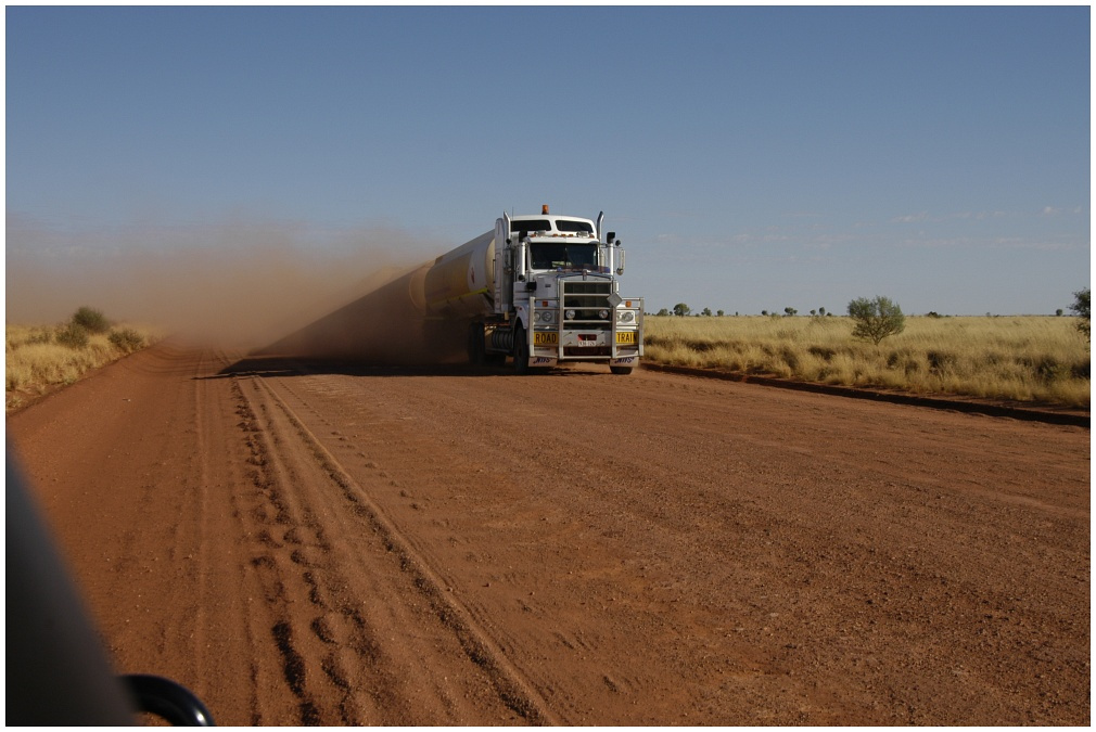 Wyruszamy na północ. Pierwszym naszym etapem jest pokonanie pustyni Tanami. Jedziemy słynną Tanami Road, drogą długości 1700 km na której praktycznie nie ma żadnych stacji benzynowych. Droga jest prosta jak strzała, gruntowa, zamieniona w tarkę przez aborygeńskie samochody ze zniszczonymi amortyzatorami.