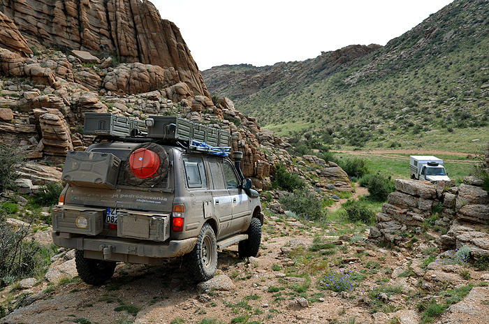 Zupełnie tak jak dwa lata temu, pogoda następnego ranka zaskoczyła nas deszczem, mgłą i powalającym wiatrem. Zupełnie jak wtedy, wyjeżdżaliśmy przez skalne bramy w pustkowie, na pozór suchy bezmiar oceanu, ale poorany kanionami przez wodę, która zaraz potem, nie wiedzieć gdzie, znika.