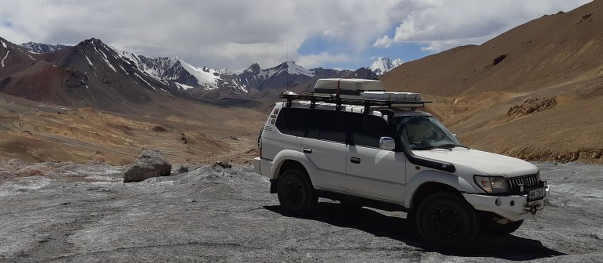 Niedaleko za jeziorem Kara-Kul, nad którym spędzaliśmy poprzednią noc, znajduje się przełęcz Ak-Baital. Jest to najwyższy punkt na trasie Autostrady Pamirskiej i najwyższy punkt naszej podróży – 4655 mnpm. Taka wysokość jest już dość mocno odczuwalna zarówno przez ludzi, jak i samochody. Szczególnie, kiedy przebywa się na niej przez dłuższy czas. Lekko ćmiący ból głowy już nam przeszedł, ale organizm na tej wysokości męczył się zdecydowanie szybciej. Samochody za to straciły sporą część swojej mocy a przy każdym naciśnięciu pedału gazu zostawiały za sobą kłęby gęstego, czarnego dymu. Jechały jednak dzielnie dalej.