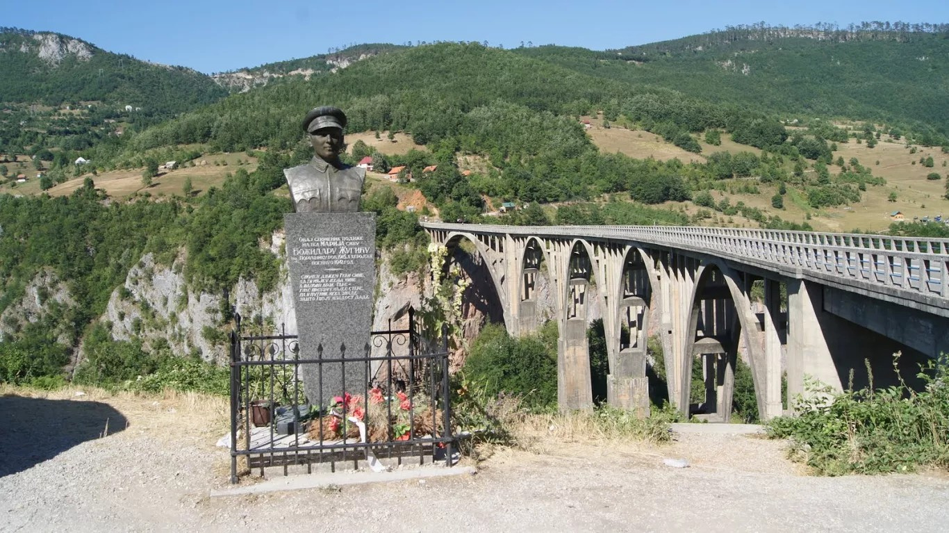 Ruszamy na objazd, oczywiście wybraliśmy inny niż wskazał nam policjant, postanowiliśmy przebić się szutrami. Po drodze w jakiejś wioseczce kupujemy na miejscowym bazarku warzywa i owoce i jedziemy zobaczyć wreszcie ten most. Docieramy wczesnym popołudniem. Aż dziwne, że tak wcześnie jesteśmy na miejscu i nie musimy szukać noclegu po ciemku. Podziwiamy most i jedziemy kanionem do pobliskiej „plaży” – tu również drogę blokuje patrol policji, zeszliśmy nad wodę ale jakoś nikt nie miał weny do niej wchodzić więc jedziemy na camping. Rozbijamy się i przy piwku podziwiamy zachód słońca na tle mostu nad rzeką Tara (koszt noclegu to 6 euro za rodzinę).