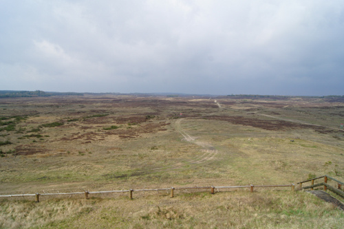 Padać już dawno przestało, wyszło słońce i wycieczka staje się jeszcze przyjemniejsza. Docieramy do punktu widokowego z którego rozpościera się przepiękny widok na teren dawnego poligonu – wrzosowiska po horyzont. Jak wrzosy kwitną jest tu pewnie jeszcze ładniej.