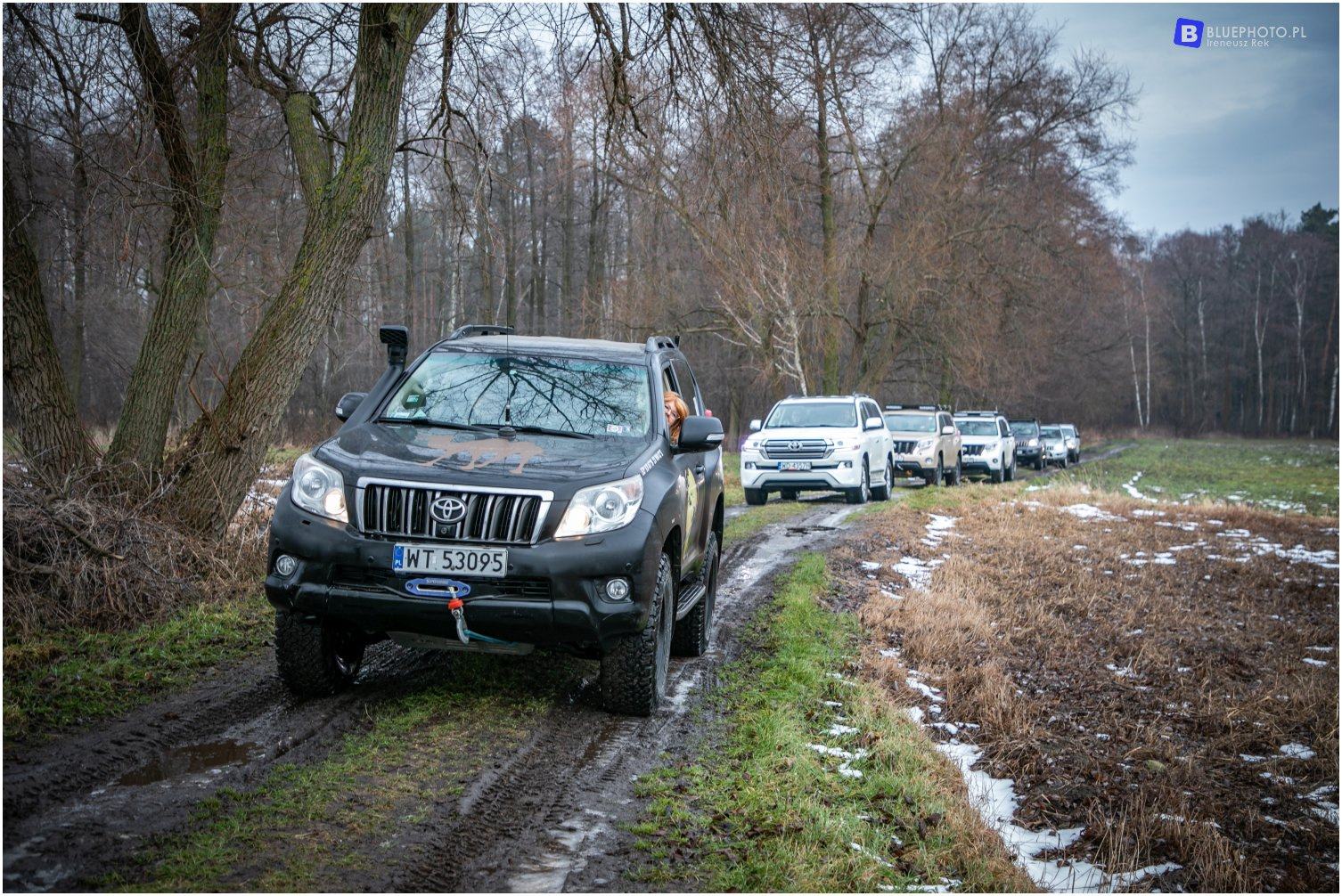 Zainspirowani niecodziennością tego skrawka Polski, po raz 12. już zagubiliśmy się w jego bezdrożach. Styczeń wprawdzie zaskakiwał nas zmiennymi co chwila warunkami, (ciepło, mrozy, roztopy), jednak pomimo konieczności kilkukrotnego sprawdzania trasy (w każdych warunkach pogodowych trudność trasy jest inna) nie odpuściliśmy. Start punktualnie o godzinie 10.00. W składzie jeden Land Cruiser 95, 3 - LC 120, 2 – LC 150, 1 – LC 155, 1-LC 200 oraz Hilux Vigo.