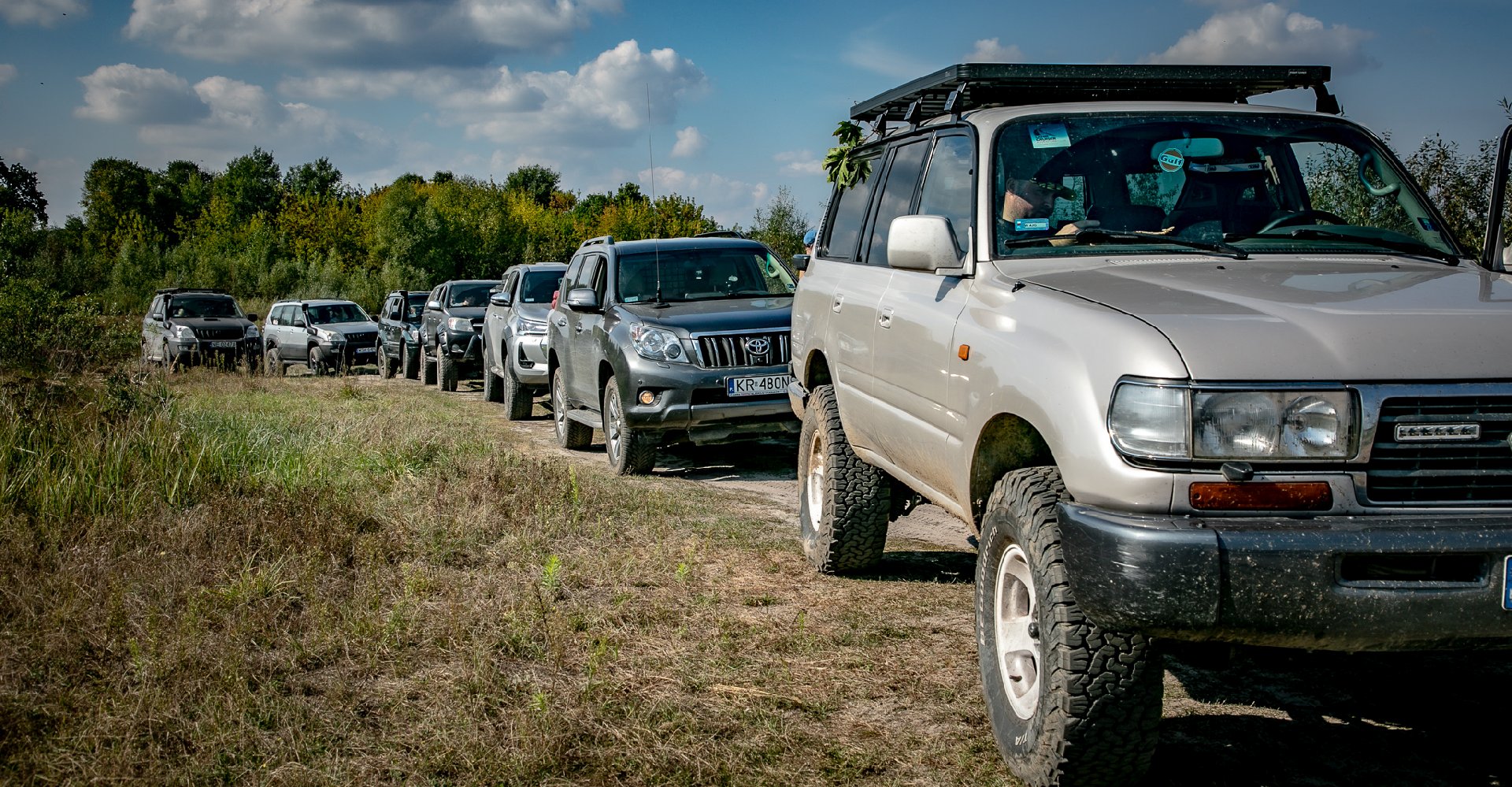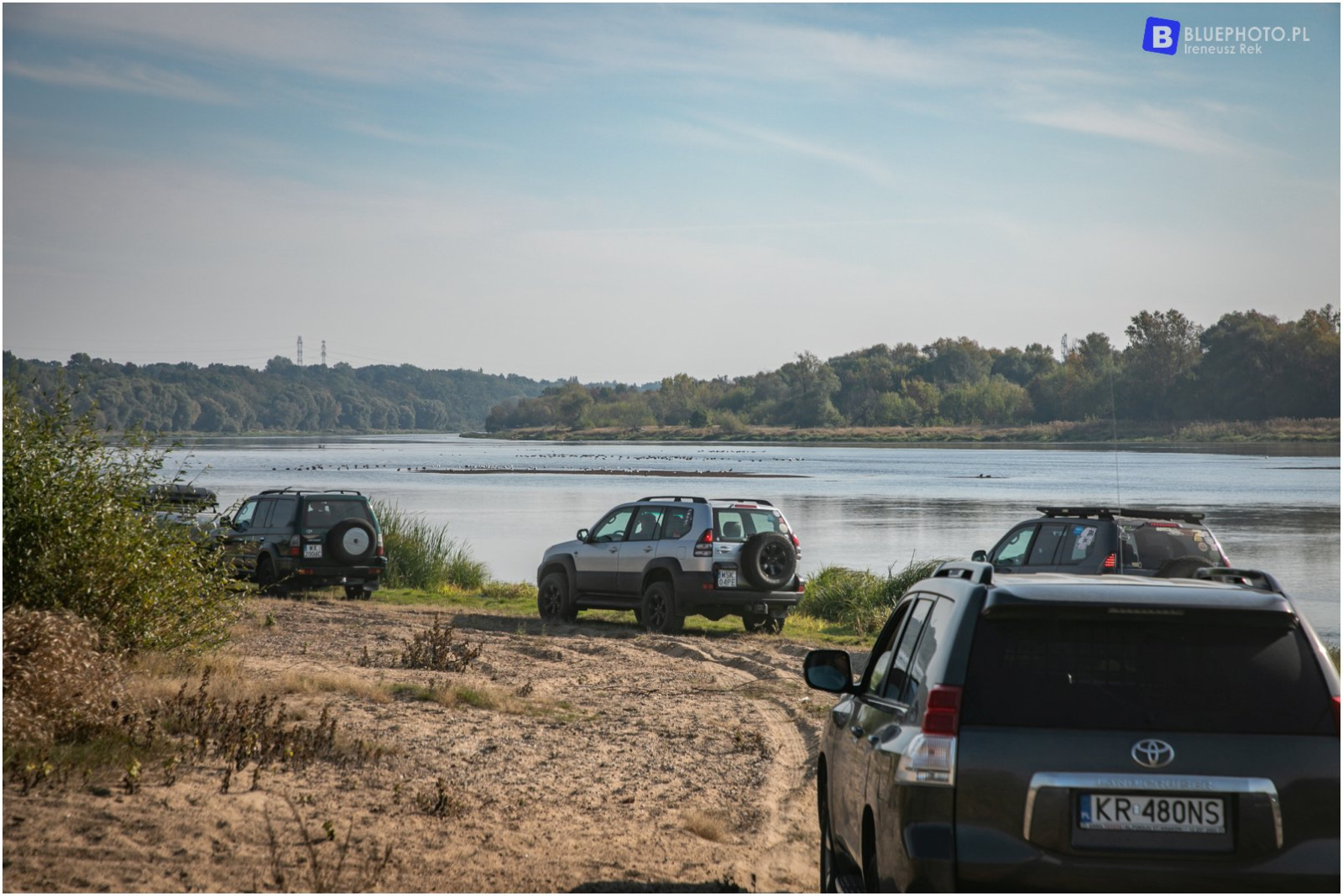 Niedzielny poranek 25 września był wyjątkowo pogodny, szczególnie po trwającej przez wcześniejsze dni jesiennej aurze. Punktualnie o 9.00 w miejscu zbiórki stawiło się 8 załóg - w 5 land cruiserach i 3 hiluxach. Po obowiązkowej kawce i krótkiej odprawie kolumna wyruszyła z Legionowa w kierunku zapory w Dębe. Z asfaltu zjechaliśmy w Starym Orzechowie, by pokręcić się po terenach na rzeką Narew. To popularne wśród wędkarzy i nie tylko miejsce. Piękne widoki, słoneczna pogoda - to idealne warunki na pamiątkowe zdjęcie grupowe. Tak też zrobiliśmy.