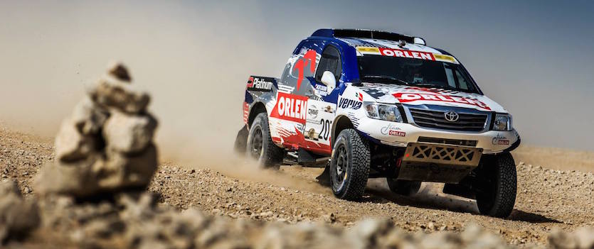 Marek Dąbrowski i Jacek Czachor konsekwentnie z etapu na etap zmniejszają różnicę dzielącą ich od czołówki. Dzisiaj pomimo ekstremalnie trudnej nawigacji i ciężkich warunków panujących na trasie doświadczona załoga ORLEN Team ukończyła rywalizację na szóstym miejscu, tracąc do lidera rajdu tylko 18`18.