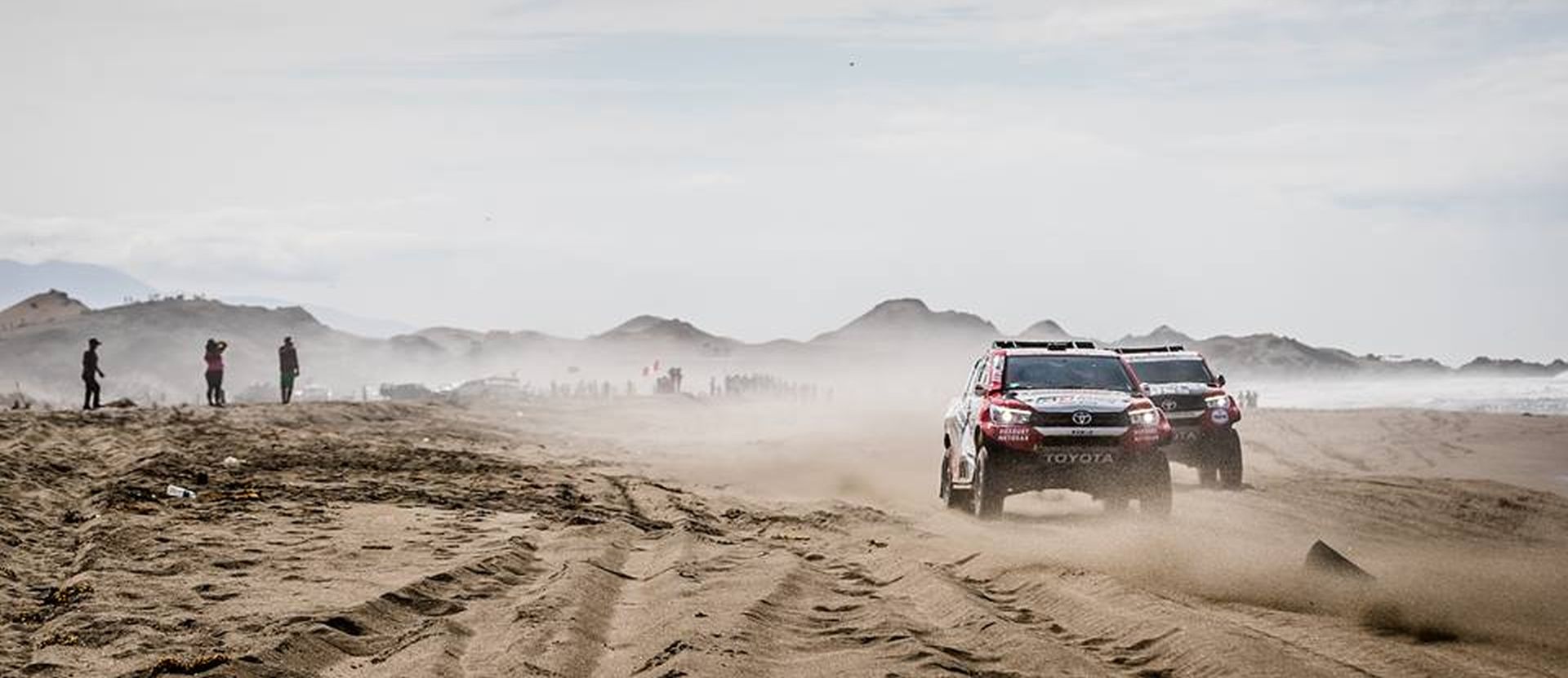 Bardzo dobrze w rajdzie radzi sobie team Toyota Gazoo Racing zajmując kolejne miejsca na liście za dwoma francuzami. Trzeci, jadacy Toyota Hilux Holender Bernhard ten Brinke traci do lidera jednak ponad godzinę i 15 minut. W strefie neutralizacji Nasser Al-Attiyah wymienił skrzynię w swoim Hiluxie, co spowodowało jego ponad 24-minutowe spóźnienie na start dalszej części oesu. Na mecie etapu pojawil się z 5-tym czasem co daje mu obecnie 4 miejsce w ogólnej klasyfikacji. Tuż za Katarczykiem plasuje się ostatnie auto teamu z załogą Giniel de Villiers/Dirk von Zitzewitz .