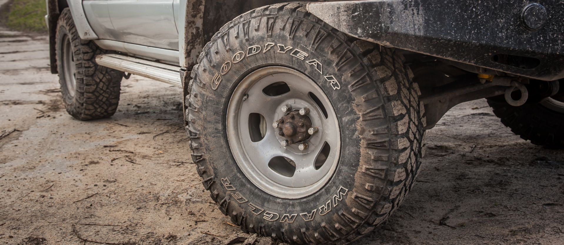 Kierowcy, którzy potrzebują wyraźnie terenowej opony, ale nie typu MT również znajdą coś dla siebie. Tutaj ciekawą propozycją jest Goodyear Wrangler Duratrac. To opona typu AT, jednak kształt jej bieżnika jest zdecydowanie bardziej drapieżny. Bywa polecana zamiast klasycznych AT-ków, ponieważ na gliniastych podłożach po deszczu jej bieżnik nie zapycha się tak łatwo, a to pozwala zachować trakcję. Rasowe MT-ki oczywiście lepiej radzą sobie w terenie, ale są głośne na asfalcie i nie trzymają się dobrze drogi. Opona Goodyera może stać się złotym środkiem - ma gęstszy bieżnik i jest uzbrajana kewlarem, dzięki czemu jest bardziej miękka i lepiej radzi sobie na asfalcie, a także wytwarza mniej hałasu. Pozostaje jednak sprawna na śliskim błocie. Choć nie jest typową zimówką, jej lamele pozwalają używać jej także zimą. Wadami tego modelu są jednak duża podatność na zużycie, twardnienie gumy z wiekiem i problemy z dostępnością niektórych rozmiarów.