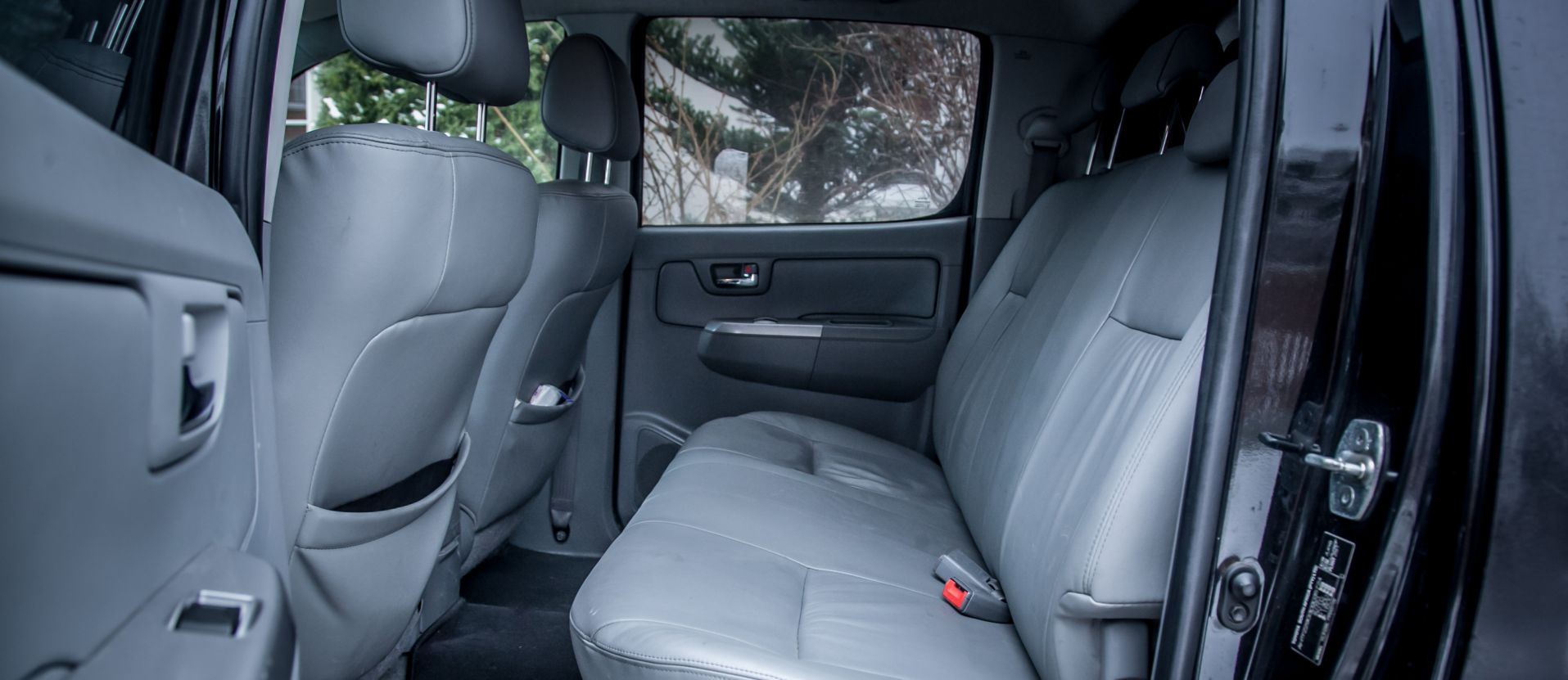 Hilux VII generacji posiada bardzo przestronne wnętrze. Ma jednak jedną wadę - brak schowków. Oczywiście pasażer z przodu ma schowek, pod kanapą są dwa małe schowki na podstawowe narzędzia, są schowki w drzwiach... ale torby np. z laptopem już nie ma gdzie odłożyć. W tej generacji toyotowego pikapa jest na to sposób. Ponieważ tylna ściana w kabinie jest pionowa, ale oparcie kanapy dla wygody pasażerów już nie, to powstała za kanapą pusta przestrzeń nadaje się do wykorzystania.