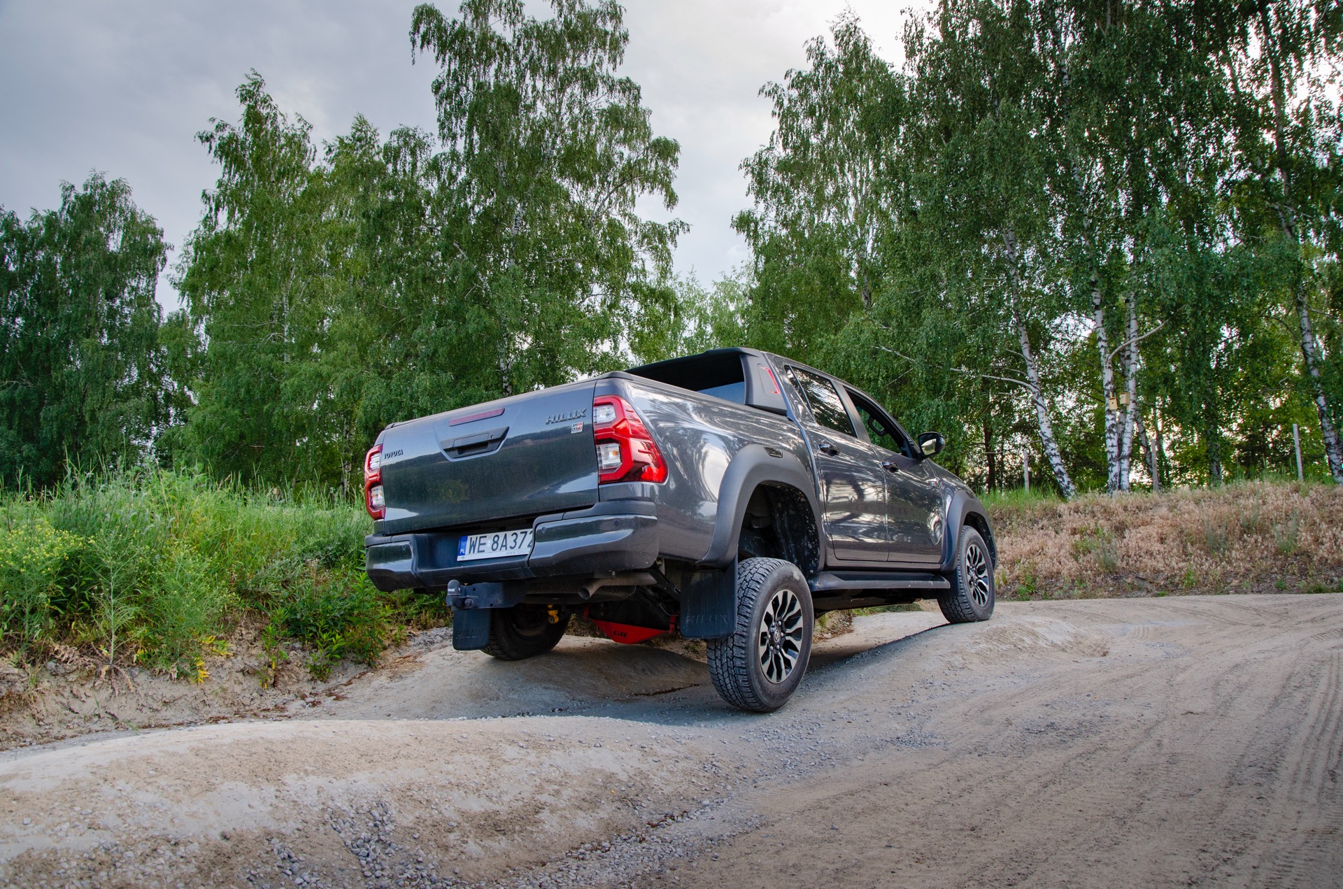 Resory seryjnego Hiluxa – jak każdego innego pick-upa – zostały zaprojektowane jako kompromis pomiędzy właściwościami jezdnymi na szosie (w tym komfort), właściwościami terenowymi i możliwościami transportowymi. Kompromis oznacza jedno – żadne z tych zadań nie jest realizowane w dobry sposób. Najwyżej przeciętnie. Choć trzeba przyznać, że już seryjny Hilux GR Sport ma tak zestrojone zawieszenie, że bardzo dobrze radzi sobie w terenie, całkiem nieźle na długich trasach, choć czuć, że nie jest to Land Cruiser.