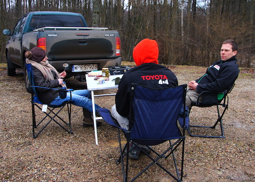 Duża powierzchnia stolika ma jednak także istotną wadę - wymaga sporo miejsca do załadowania. Z tego powodu polecałbym go właścicielom pick-up’ów, camperów czy po prostu dużych samochodów. Na przykład w Nissanie Patrolu nie mieści się za tylnym siedzeniem. Próby umieszczenia go pionowo za tylnym oparciem skończyły się fiaskiem – przeszkadzają nadkola. Natomiast w Toyocie Land Cruiser 100 stół można w wyżej wymieniony sposób zapakować, choć zasłania lusterko wsteczne, a do jego wyjęcia trzeba by wypakować wszystko z bagażnika lub ze środka samochodu, co w warunkach szybkiego rozkładania obozu wcale nie jest przyjemne. Jednak firma Front Runner częściowo poradziła sobie z tym problemem, oferując specjalne uchwyty do wożenia stolika pod bagażnikiem dachowym.
