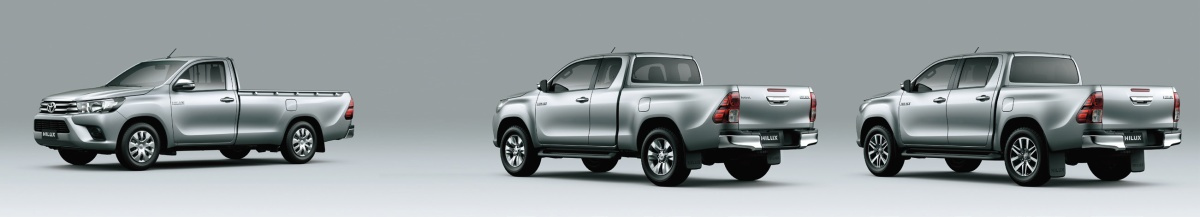 Podobnie jak w przypadku Hiluxa poprzedniej generacji tak i teraz producent oferował całą gamę opcji rozstawu osi, długości auta i rodzajów kabin. Obok tradycyjnych wersji dwudrzwiowej i czterodrzwiowej dostępna była także przedłużana dwudrzwiowa Xtracab. Dodatkowo do wyboru były dwa rozstawy osi i trzy długości całkowite oraz, w zależności od zastosowanej kabiny, różne długości skrzyń ładunkowych. Na większości rynków dostępny był napęd zarówno na tylną oś jak i na wszystkie cztery koła. Rodzaj napędu zazwyczaj można było wybrać do dowolnego wariantu nadwozia. Bywały jednak kraje, w których Toyota stawiała pewne ograniczenia. Na przykład w Boliwii kabinę Xtracab oferowano tylko z napędem 4x4.