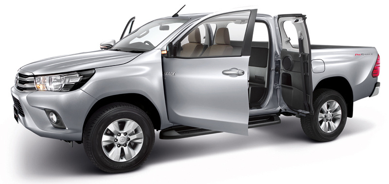 Nowa Hilux jest odpowiedzią na tendencję coraz częstszego wykorzystywania pick-upów do rekreacji, dlatego otrzymał nowy, uwspółcześniony design, oferuje też większą wygodę, bogate wyposażenie, nowoczesne technologie i wysoki standard bezpieczeństwa. Połączenie dbałości o wytrzymałość i styl jest doskonale widoczne w przedniej części auta. Pod charakterystyczną maską, zaprojektowano nowa atrapę chłodnicy, przechodzącą w przednie reflektory zaopatrzone w oryginalne i obecnie bardzo modne światła do jazdy dziennej z 12 białymi diodami LED. Reflektory zachodzą na błotniki, co dodatkowo podkreśla szerokość nowego pick-upa. Zaawansowana technologia zastosowana w reflektorach obejmuje silne światła mijania LED, dostępne zwykle w samochodach należących do wyższych klas. Umieszczenie obudowy świateł przeciwmgielnych na krańcach zderzaka podkreśla solidny i stabilny wygląd przodu pick-upa. Dolne krańce i spód zderzaka przechodzą płynnie w nową, mocniejszą i szerszą osłonę dolną. Ich kształt optymalizuje prześwit, z myślą o jeździe terenowej w nawet najbardziej ekstremalnych warunkach. Cenna zmianą oczekiwana przez posiadaczy toyotowego pikapa jest nowy zderzak tylny ze stopniem. Rozwiązanie to proponowane juz przez innych producentów ułatwia sięganie do skrzyni ładunkowej. Auto można też doposażyć w kamerę cofania wbudowaną w układ klamki.